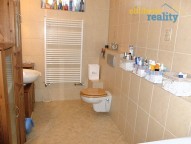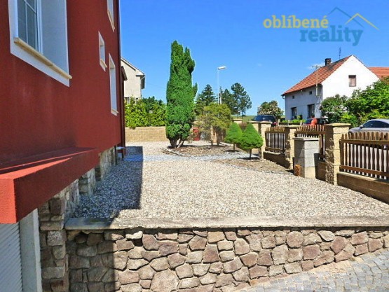 Dispozičně - přízemí: vstupní chodba odkud vedou schody do technických místností, posilovny..., garáže, dílny. Dále v přízemí koupelna s sociální zařízení WC, +. pokoj, velice prostorný obývací pokoj s krbem a francouzským oknem a vstupem na venkovní terasu, kuchyně. 1. patro - pracovna, pokoj pro hosty, dětský pokoj, ložnice a koupelna s rohovou vanou + vstup na terasu v 1. patře. Vedle domu parkovací stání pro několik vozidel - posuvné dveře, dále navazuje zahradní pozemek - okrasné stromy a keře, altán venkovní s posezením + gril, venkovní bazén s posezením na terase, skalka - KLID A POHODA.
