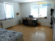 Dispozičně - přízemí: vstupní chodba odkud vedou schody do technických místností, posilovny..., garáže, dílny. Dále v přízemí koupelna s sociální zařízení WC, +. pokoj, velice prostorný obývací pokoj s krbem a francouzským oknem a vstupem na venkovní terasu, kuchyně. 1. patro - pracovna, pokoj pro hosty, dětský pokoj, ložnice a koupelna s rohovou vanou + vstup na terasu v 1. patře. Vedle domu parkovací stání pro několik vozidel - posuvné dveře, dále navazuje zahradní pozemek - okrasné stromy a keře, altán venkovní s posezením + gril, venkovní bazén s posezením na terase, skalka - KLID A POHODA.