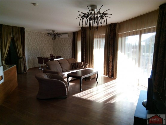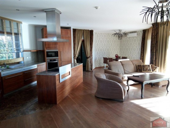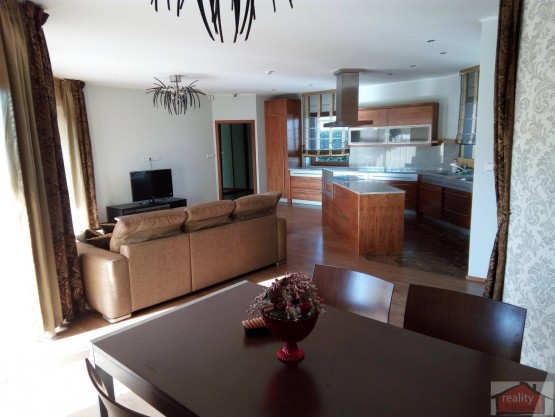 K dispozici je prostorný obývací pokoj spojený s kuchyní (kvalitní spotřebiče značky MIELE) a jídelním koutem, 3 ložnice, pracovna, pokoj pro hosty, vícero šaten, technická místnost, 2 krát koupelna.