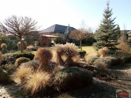 Součástí domu je nádherná vzrostlá zahrada s terasou a altánem ze severské borovice.