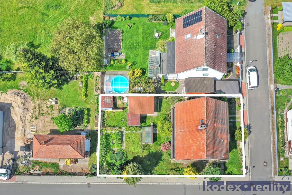 Dům stojí na hezkém rovinatém a udržovaném pozemku o velikosti 590 m2. Užitná plocha celého domu je 270 m2 (+ půda + příslušenství na pozemku). V horní části má dům dispozici 4+kk, ve spodní části 2+1 s příslušenstvím. Byty mají samostatný vchod.