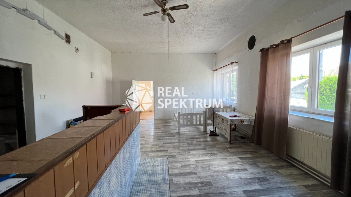 Ve výhradním zastoupení majitele nabízíme k prodeji samostatně stojící, podsklepený rodinný dům se sálem (dříve hostinec), garáží a pozemkem. Prostorný dům se nachází v centru malé obce, v klidné a příjemné lokalitě jihoz...ápadním směrem od Brna, mezi městy Pohořelice a Miroslav. Svojí dispozicí a velikostí je dům vhodný pro vícegenerační bydlení, bydlení v kombinaci s podnikáním nebo také jako zaměstnanecká ubytovna. Dům je v dobrém stavu po částečných rekonstrukcích a je připraven pro okamžité užívání.