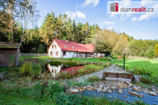 Cena je včetně provize RK a právního servisu. Více info Vám poskytne makléř Tomáš Pelda. . Dumrealit. cz Vám nabízí prodej rodinného domu (chalupy) s pozemkem, dílnou, stodolou, saunou a rybníčkem, na ojedinělém místě "...NA SAMOTĚ V LESE" u obce Hněvanov, Rožmitál na Šumavě, u státních hranic s Rakouskem - Dolní Dvořiště. Prodávaný komplex se nachází na pozemku par. č. st. 133 jehož součástí je stavba; par. č. 848/4 a 862/2 to vše je zapsané na LV č. 12 v k. ú. Hněvanov, obec Rožmitál na Šumavě. Podrobné rozkreslení dispozice naleznete na orientačním plánku mezi fotografiemi. Dům rekonstruovaný v roce 2009, je ve velice hezkém stavu a jeho vytápění je kombinované: 1) zplynovacím kotlem na tuhá paliva; 2) tepelné čerpadlo (vzduch - voda); 3) krbová vložka (vzduch - vzduch) v obývacím pokoji s prostupy do podkroví; 4) kamna s plotýnkou v kuchyni; 5) "kanadská" kamna v předsíni; 6) krb ve společenské místnosti. Objekt má vlastní vrt s užitkovou vodou a kanalizace je řešena jímkou. Okna jsou plastová s dřevěným dekorem a izolačními trojskly. Zdivo je smíšené. Tepelná izolace v podkroví je minerální vata tl. 24 cm. Strop a krov je nový (k dispozici máme fotodokumentaci z proběhlé rekonstrukce). Ohřev teplé vody je pomocí elektrického bojleru. Na pozemku se nachází venkovní finská sauna, rybníček a hřiště. Doporučuji prohlídku, "NA SAMOTĚ V LESE" se nemovitosti neprodávají každý den. Více info Vám poskytne realitní makléř Tomáš Pelda z realitní kanceláře A TEPMO. Zajistíme Vám financování a veškerý právní servis. Ev. číslo: 647855. Energetický štítek: G