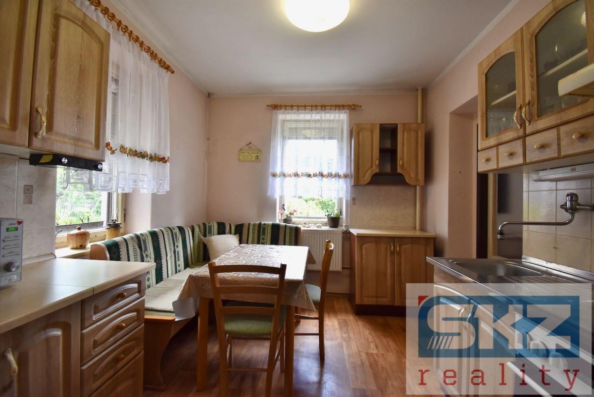 SKZ REALITY - Rumburk Vám představuje k prodeji rodinný dům 5+2 s garáží a zahradou v Rumburku. Dům se nachází v klidné části města nedaleko centra. Částečně podsklepená stavba domu se sedlovou střechou (se zánovní kvalit...ní střešní krytinou) sestává v přízemí ze 4 místností, dále kuchyně, zádveří, uhelny, chodby, koupelny, umývárny a prostorné garáže s el. ovládanými vraty. V II. NP se nachází, mezipatro, kuchyň, světlý a prostorný pokoj s výstupem na terasu a úložným prostorem. Vytápění je zajištěno ústředně s plynovým kotlem, teplá voda bojlerem a odpady jsou svedeny do septiku s přepadem již do kanalizace. Ve sklepě se nachází studna s domácí vodárnou s napojením do domu. Okna jsou dřevěná se zdvojenými skly a opatřena venkovními žaluziemi. Ze zahrady na jižní straně je možný vstup do dalšího podzemního prostoru užívaného jako sklad zahradního nářadí nebo menší garáž. Na pozemku se nachází 2 vedlejší stavby a 2 skleníky. Pozemek je rovinný, po celém obvodu oplocený s ovocnými stromy a okrasnými dřevinami. Dům je dispozičně uspořádaný i pro dvougenerační bydlení (studie na přestavbu lze dodat). K dispozici jsou u makléře půdorysy, pohledy a případně další fotografie. Prohlédněte si také zpracované video a pak se objednejte na prohlídku domu. Nepropásněte šanci na příjemné bydlení v moc hezké a klidné části Rumburka.
