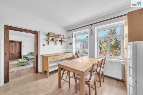 Dům o celkové podlahové ploše 350 m² a užitné ploše 274 m² disponuje dvěma bytovými jednotkami 5+1 a 2+1, přičemž menší byt lze využít jako pokoj pro hosty, pracovnu, kancelář nebo sídlo firmy. K domu náleží terasa a pergola, rozlehlá zahrada o velikosti 1 200 m² a dalších 900 m² pronajatého užitkového pozemku za plotem. Vytápění je řešeno dřevem, což v oblasti obklopené lesy zajišťuje nízké provozní náklady i v zimních měsících. Součástí pozemku je také impozantní stodola o rozměrech 10 × 8 m s vysokou střechou, vhodnou pro instalaci až 30kWhp solární elektrárny, a rozsáhlými úložnými prostory, k nimž přiléhá dílna a bývalý kozí chlívek (6 × 3, 5 m). Na zahradě se nachází nově postavená zídka proti erozi a čerstvě opravená studna z roku 1827.