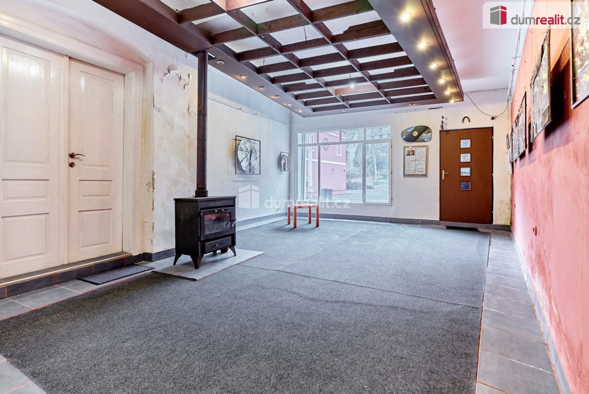 včetně právních služeb a provize RK. Dumrealit. cz Vám nabízí prodej domu na hlavní třídě v krušnohorském Jáchymově. Podsklepený rodinný dům má v přízemí kromě chodby jednu velkou místnost užívanou jako nebytový prostor s v...lastním vstupem, v mezipatře je sociální zařízení WC s umyvadlem a jedna nedokončená místnost. V 1. patře je samostatný rekonstruovaný byt 2+kk o ploše cca 60 m², vybavený kuchyňskou linkou s indukční varnou deskou, el. bojlerem na ohřev vody a krbovými kamny. V koupelně je sprcha, umyvadlo a sociální zařízení WC. Na podlaze je položena plovoucí podlaha, v koupelně dlažba. V mezipatře je také sociální zařízení WC s umyvadlem a jedna místnost využívaná jako ateliér. Ve druhém patře je podkrovní byt 2+1 a půdní prostor. Část oken v domě byla vyměněna za plastová. V obci Jáchymov je bohatá občanská vybavenost, možnost sportovního i kulturního vyžití, do oblíbených lyžařských středisek Plešivec a Klínovec je to pár kilometrů. Sjezdovky jsou i přímo v obci, v okolí je mnoho běžeckých, cyklistických a turistických tras. Nemovitost je v souladu s platným zákonem zařazena do energetické třídy G, jelikož před zadáním do inzerce nebyl vyhotoven PENB. Tuto nemovitost lze hradit hypotečním úvěrem, který Vám rádi pomůžeme vyřídit v našem hypotečním centru. Ev. číslo: 643322. Energetický štítek: G