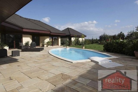 Nabízíme moc hezký nízkoenergetický zděný RD (rodinný dům) 6+kk typu bungalov se samostatně stojící prostornou garáží pro dva vozy (65m2) ve vyhledávané obci Louňovice..., Praha východ. Luxusní, nadstandardně zařízený dům s naprostým soukromím. Prostorný obývací pokoj včetně krbu s kuchyňským koutem a kompletně vybavenou kuchyňskou linkou, zimní zahrada využívaná jako tzv. pánský pokoj, ložnice se šatnami, dvě koupelny, tři toalety, infrasauna, prádelna a technická místnost. Vytápění úsporné elektrické. Celkové roční náklady na provoz domu včetně bazénu - 36. 000, - Kč!!!V domě je nainstalován alarm s kamerovým systémem s možností připojení na centrální pult ochrany. Na slunné, krásně upravené zahradě s automatickou závlahou (tank na dešťovou vodu) se nachází vyhřívaný bazén se slanou vodou a protiproudem. Veřejná kanalizace a vodovodní řad, elektrika. Plyn není zaveden. Rok kolaudace 2009. Celková plocha pozemku 1511 m2, zastavěná plocha 265 m2 + garáž 65 m2. Možno koupit i s druhou částí pozemku o výměře 1706 m2 těsně navazujícím na nabízenou nemovitost za celkovou cenu 23, 000. 000, - Kč - není podmínkou!!. Srdečně Vás spolu s majitelem srdečně zvu na prohlídku. Ráda Vám pomohu i s hypotečním úvěrem. Dům se nachází 9km za hranicí Prahy, 6km za Říčany směr Jevany.