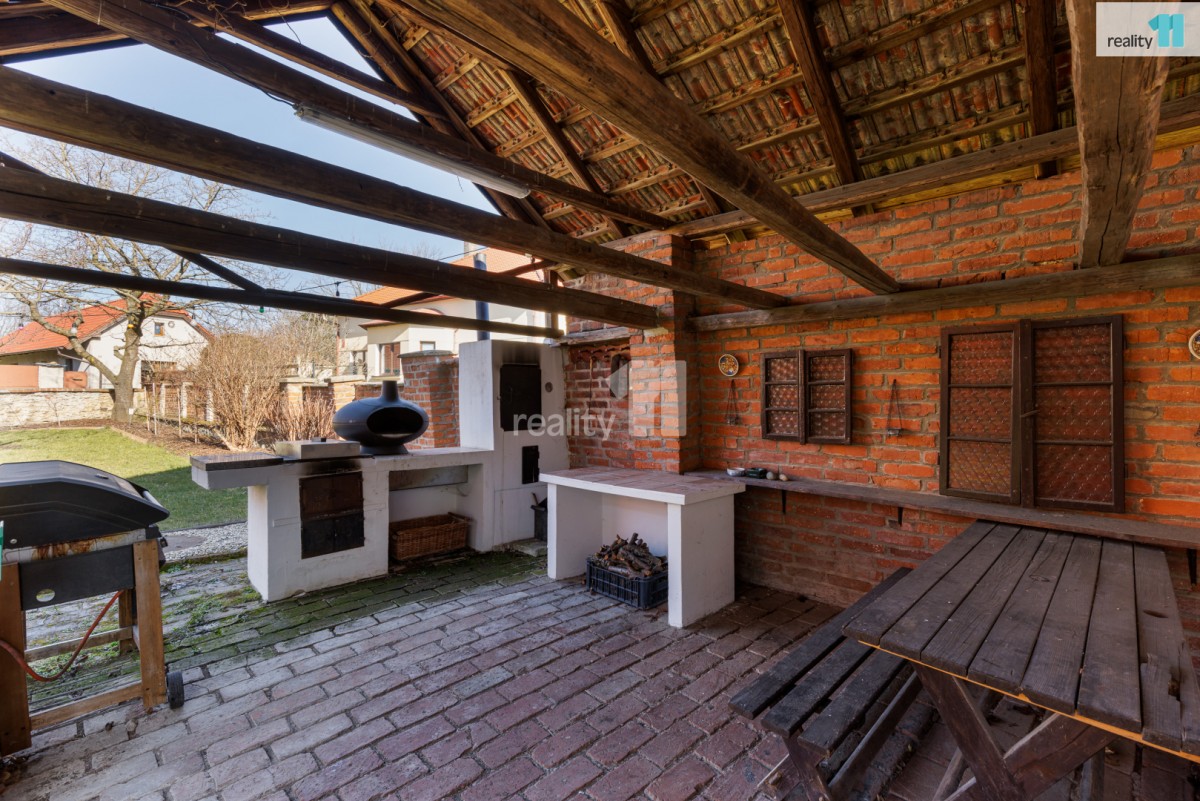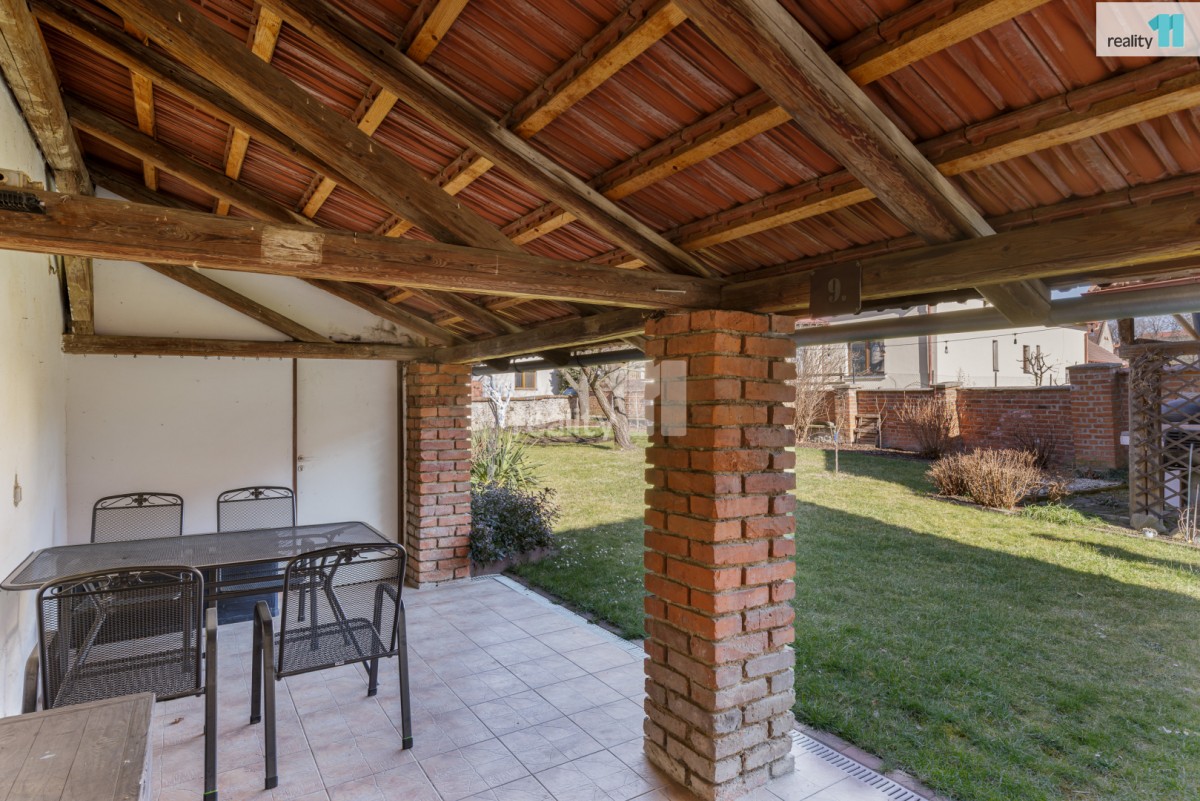 • Zastřešená terasa, propojená s udržovanou zahradou plnou vzrostlých stromů, které poskytují příjemný stín