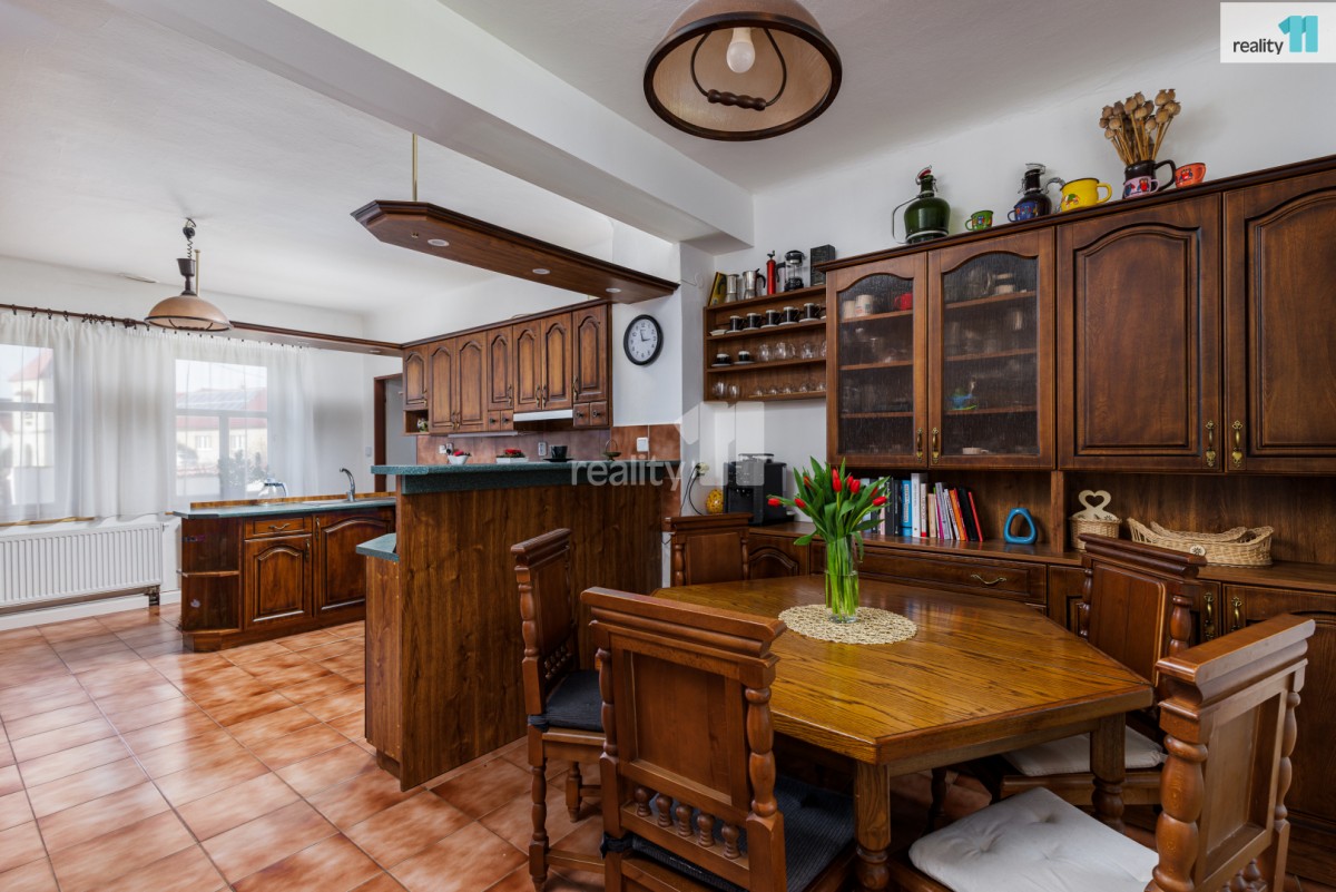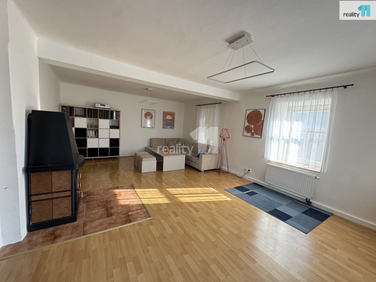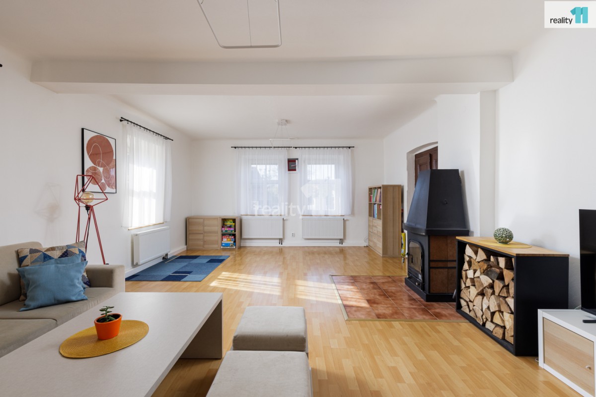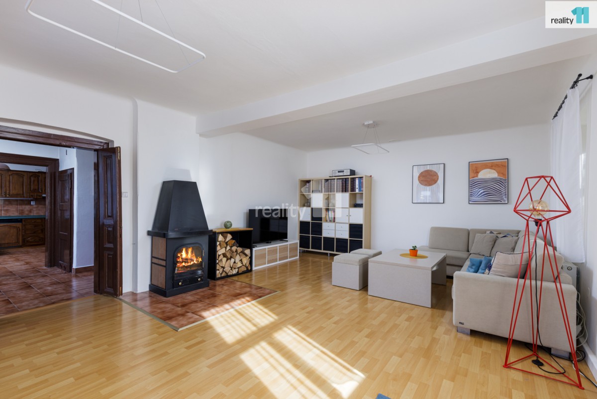 • Prostorný obývací pokoj s krbovými kamny