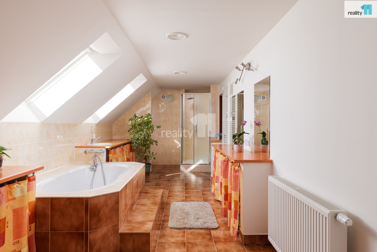 • Velká koupelna (20 m²) s vanou i sprchovým koutem