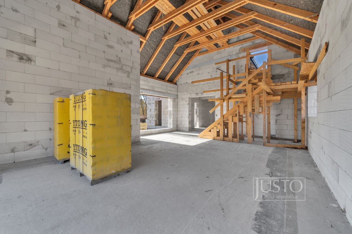 V exkluzivním zastoupení majitele vám nabízíme ke koupi rozestavěnou dvoupodlažní vilu, kterou si můžete dokončit podle svých představ.