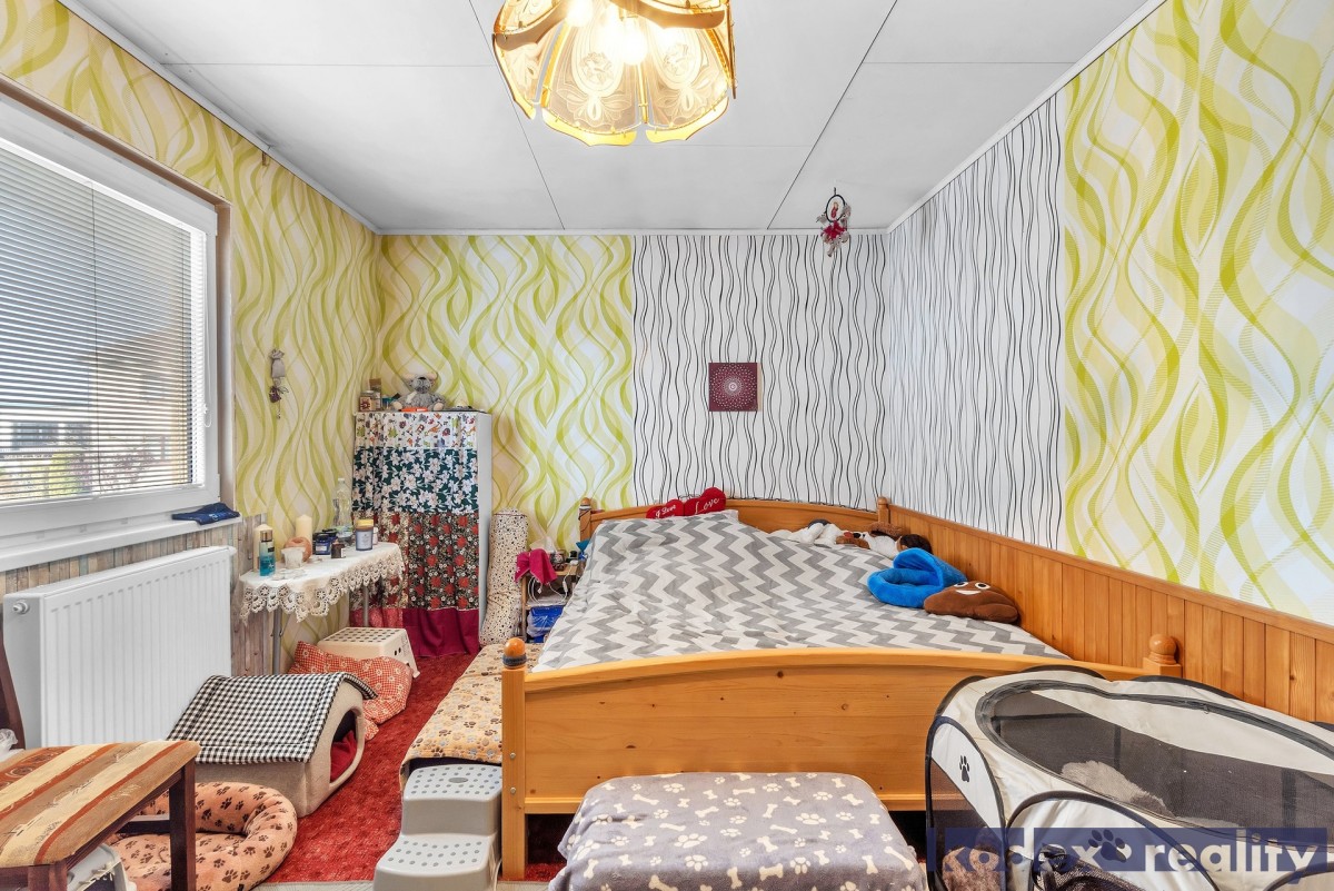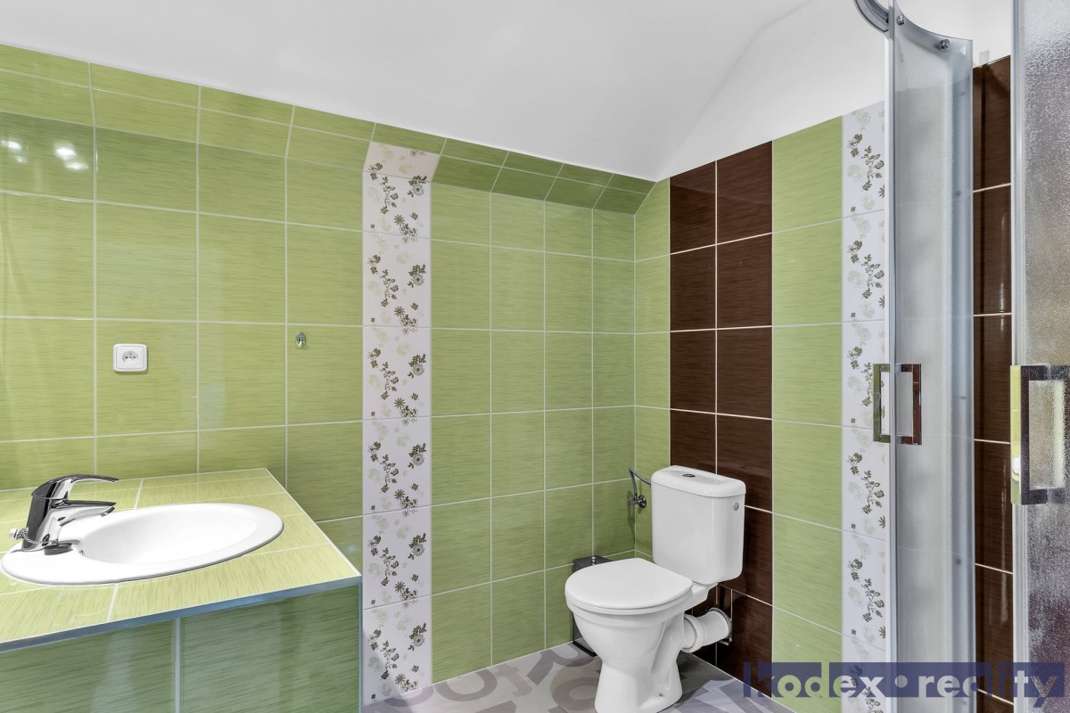 Horní patro – velká obytná místnost s jídelnou a kuchyní, 3 krát pokoj, koupelna, sociální zařízení WC, z chodby vstup do podkroví.