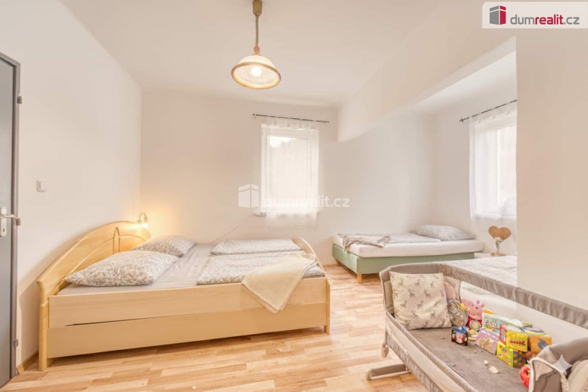 Dumrealit. cz Vám nabízí koupi prostorného rodinného domu se zahradou v obci Velichov u Karlových Varů. Kvalitní cihlový dům o čtyřech podlažích obklopuje pozemek o celkové rozloze 999 m², z čehož zastavěná plocha činí 128 ...m², užitná vnitřní plocha je cca 280 m². Dům nabízí dispozici 5+kk s tím, že v přízemí se nachází prostorný obývací pokoj s kuchyňskou linkou a jídelním koutem, koupelna s vanou, toaletou, dále předsíň, výklenek vhodný pro vestavěnou skříň, dále je v přízemí velká místnost, ze které vedou balkonové dveře na zahradu, kde je příprava na terasu. V prvním patře jsou tři velké ložnice, velká úložná komora, chodba a samostatná toaleta. Dále je zde moc hezký půdní prostor, kde by mohly vzniknout až dva další pokoje. Dřevěný krov je v dobrém stavu, střecha je z pálených tašek. Dům je ze 3/4 podsklepený, je zde dostatek úložného prostoru. Dům prošel postupně kompletní rekonstrukcí, a to včetně elektroinstalace, vodoinstalace, odpadů, koupelny, tříkomorových plastových oken, vstupních dveří. V koupelně a na toaletě v prvním patře je podlahové vytápění. Je zde instalován bezpečnostní kamerový systém. Budova má celkem tři vchody. Dům je napojen na všechny inženýrské sítě včetně vodovodního řadu, kanalizace, vody, na okraji pozemku je plynová přípojka. Cihlový dům vytápí tepelné čerpadlo (vzduch - vzduch), navíc jsou v obývacím pokoji krbová kamna. V koupelně je podlahové vytápění. Pozemek a příjezd je přímo z obecní cesty, na pozemku je na začátku menší parkoviště, kde zaparkují až 3 nebo 4 automobily. Nemovitost je umístěna na mírném vyvýšeném místě, převážně je orientována na jižní slunečnou stranu. Dům ve Velichově nabízí kombinaci moderního bydlení a klidného prostředí, je zde dostatek úložného prostoru a soukromí pro každého člena rodiny. Ve Velichově je školka, městský úřad, potraviny, kostel i hospoda, je zde zastávka MHD (2 minuty chůze). Nejbližší město s veškerou občanskou vybaveností je Ostrov (5 minut jízdy): zde jsou školy, školky, banky, obchody, nemocnice, restaurace, městský úřad, supermarkety, lékaři atd. . Karlovy Vary jsou pak 15 - 20 minut jízdy, zde můžete navštívit OC Varyáda, Shopland či Globus. KV Aréna, fitness Prima, saunový svět a bazén Thermal plus další jsou k dispozici sportovcům (vše do cca 18 minut jízdy). Nově vybudovaná cyklostezka včetně areálu a odpočinkových stanovišť podél Ohře vede přes Sokolov, Cheb až do Německa. Karlovy Vary se staly součástí světového kulturního dědictví UNESCO. Město je dějištěm každoročního filmového festivalu, KV jsou plné parků, výborných restaurací, ve Varech pramení desítky teplých léčivých pramenů, zároveň je město zasazeno v moc hezké přírodě a je nedaleko od německých hranic, po dálnici je již díky nově dokončeným úsekům již časově rozumně dostupné do Prahy. Cena zahrnuje právní servis a provizi realitní kanceláře. Ev. číslo: 655261. Energetický štítek: G (15 kWh/m2/rok).