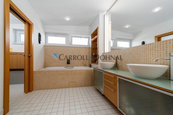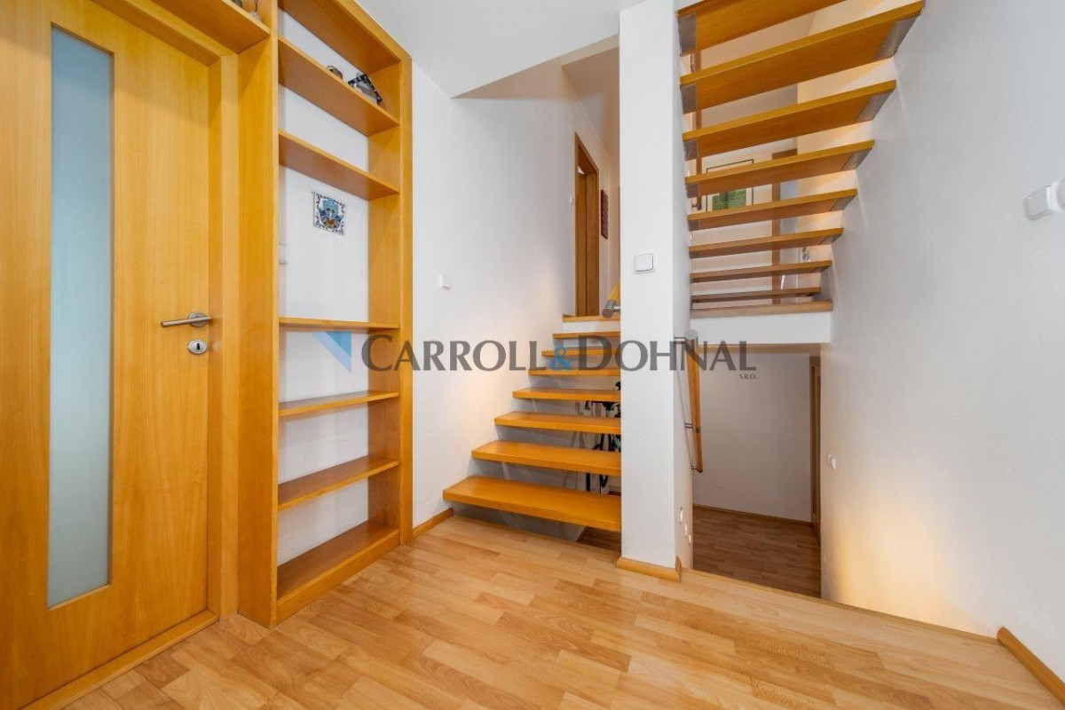 Dům je netradičně víceúrovňově řešen , má 3 plně nadzemní podlaží, přízemí s okny do zahrady a jedno podzemní podlaží.