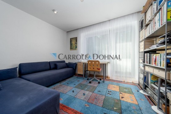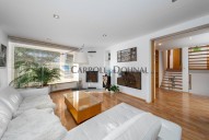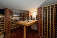 - do obytné zóny, po schodišti vstup do obývacího pokoje s navazující jídelnou a vybavenou kuchyní. Z obývacího pokoje, v němž se nachází funkční krb, výstup na terasu s markýzou na dálkové ovládání a zahradu.