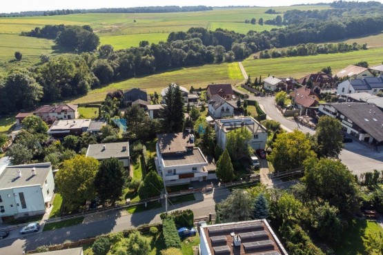 Celková velikost pozemku 800 m2, zastavěná plocha domu 184 m2, užitná plocha cca 313 m2 (266 m2 bez garáží).
