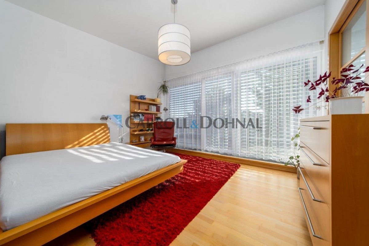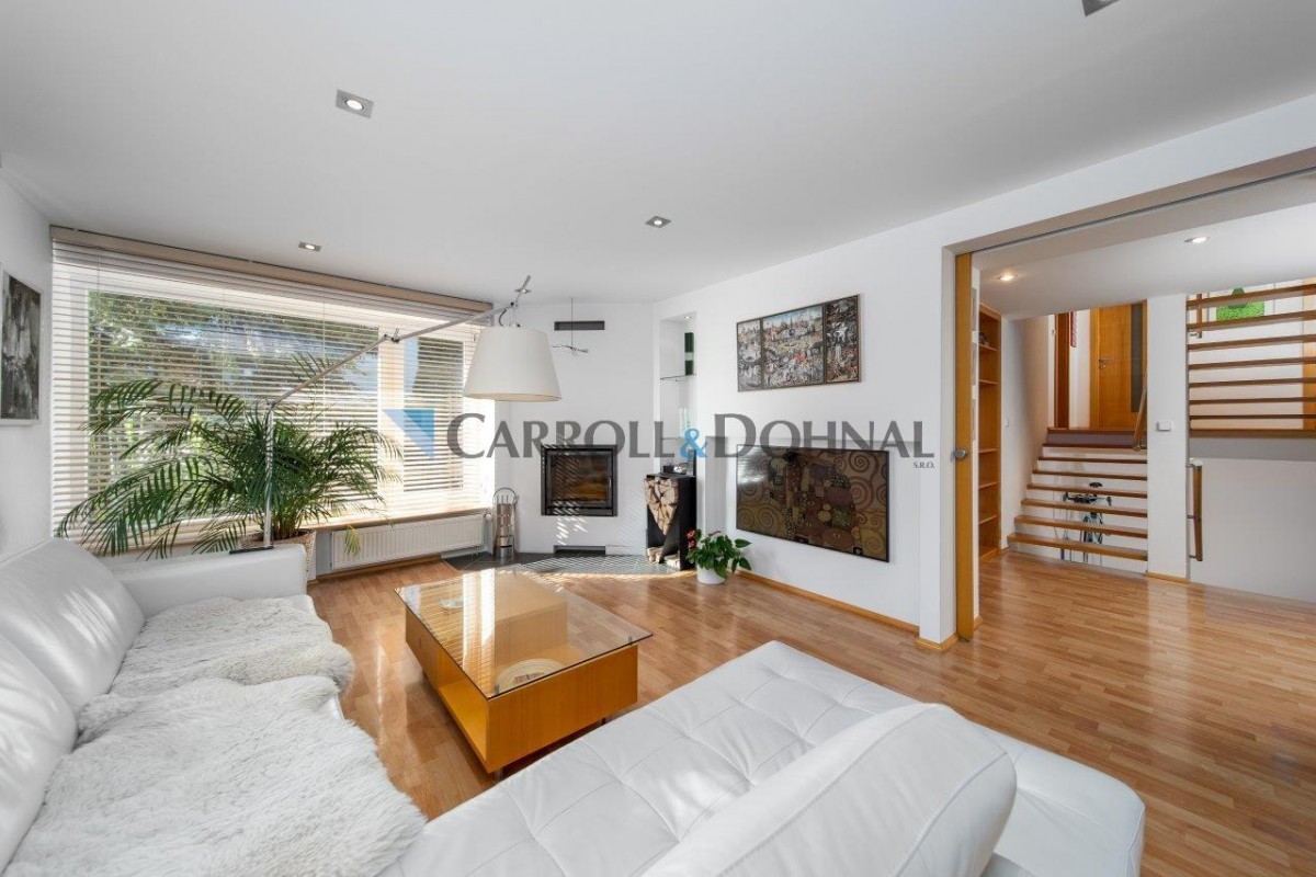 Dům je netradičně víceúrovňově řešen , má 3 plně nadzemní podlaží, přízemí s okny do zahrady a jedno podzemní podlaží.
