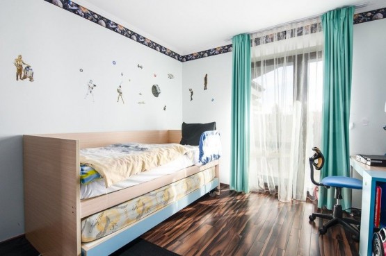 V prvním patře je ložnice, 2 krát dětský pokoj, koupelna, samostatná toaleta, pokoj pro hosty a velkorysá šatna.