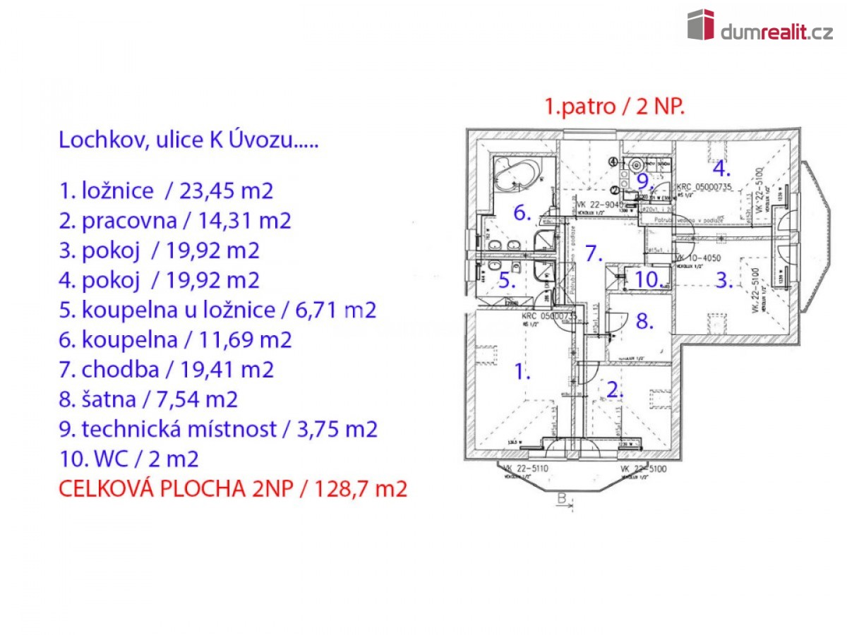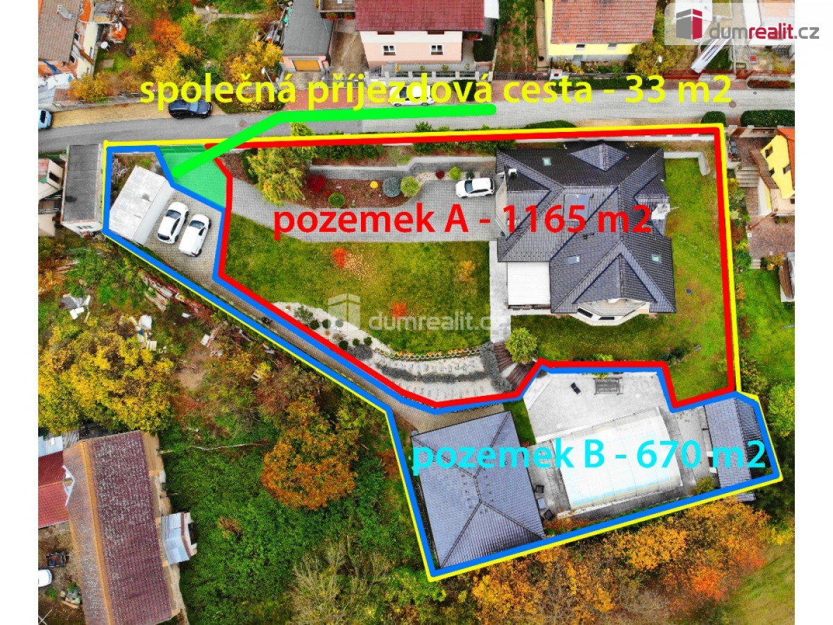 cena je včetně odměny RK. Hledáte prostorný rodinný dům v Praze, ideálně dvougenerační či s dalším domkem na zahradě? Mám zde pro vás exkluzivní nabídku rodinného domu z roku 2009, v ulici K Úvozu, Praha 5 – Lochkov. Ten...to moderní dům s dispozicí 6+kk a dvougaráží, s pozemkem o velikosti 1868 m², se zděným, samostatným domkem s dispozicí 3+kk (62 m²) vhodným pro návštěvy, rodiče či na podnikání, s velkým, krytým bazénem (10 x 5 x 1, 5 hloubka), garáží pro motorky či další auto (22 m²), zahradním domkem (9 m²) s technikou pro bazén a s velkou střešní pergolou. Tato nemovitost nabízí vše, co hledáte od svého budoucího bydlení. Hlavní dominantou zahrady je zděný dům z roku 2009 s dispozicí 6+kk, kterou v přízemí tvoří: prostorný obývací pokoj spojený s kuchyňským koutem a krbem, se vstupem na zastřešenou terasu s jihozápadní orientací, se vstupem do zimní zahrady a vstupem na zahradu, dále je v přízemí centrální chodba se zádveřím, sklad potravin pod schodištěm, koupelna s sociální zařízení WC, pracovna / pokoj pro návštěvy. Po schodišti se dostaneme do 1. patra / 2 NP, kde je umístěná velká ložnice se vstupem do vlastní koupelna s sociální zařízení WC, se vstupem na balkon a výhledem do zahrady, dále ložnice (nyní fitness) také se vstupem na balkon, šatna, centrální velká koupelna s vanou a sprchou, 2 x umyvadlem, samostatné sociální zařízení WC, kotelna s plynovým kotlem a prostorem na pračku a sušičku a 2 x identický dětský pokoj se vstupem na společný balkon. Topení domu zajištuje centrální plynový kotel se zásobníkem na vodu, ohřev vody v letních měsících zajištují dva solární panely na ohřev vody na střeše. Na pozemku je dále umístěn plnohodnotný domek s dispozicí 3+kk (62 m²) přímo u bazénu s prostorem na lehátka, trampolínu atd. . dále zahradní domek s krytým posezením a zděná garáží vjezdu na pozemek. Parkování je plnohodnotné, v domě 6+kk je dvojgaráž, další 2 - 4 auta mohou parkovat před garáží, dvě auta pak u vjezdu na zahradu a další auto / motorky pak do zděná garáže. Jak dům 6+kk, tak i domek 3+kk mají vlastní elektroměr, plynoměr, odpady do kanalizace (zahradní domek má čerpadlo do tlakové kanalizace), lze jej tedy např. plnohodnotně oddělit na dva pozemky nebo domek 3+kk pronajímat s vlastním parkováním a garáží – vše dle potřeb nového majitele. Menší domek 3+kk je také vytápěn vlastním plynovým kotlem a je zcela nezávislý na domě 6+kk. Tato nemovitost je v osobním vlastnictví, lze ji financovat hypotečním úvěrem, je v TOP stavu a připravena dle dohody k nastěhování. V ceně domu a domku jsou kuchyně + spotřebiče, vestavěné skříně a osvětlení, ostatní dle dohody – více info v RK. V okolí domu je absolutní klid, zastávka MHD (bus č. 120 – Lochkov je 2 minuty od domu, potraviny také do 5 minut pěšky, dále je v pražské části Lochkov – obecní úřad, fotbalové hřiště, tenisové kurty, venkovní posilovna, městská policie, mateřská školka, autem pak na Pražský okruh 5 minut, do Ev. číslo: 649217. Energetický štítek: C (98 kWh/m2/rok).