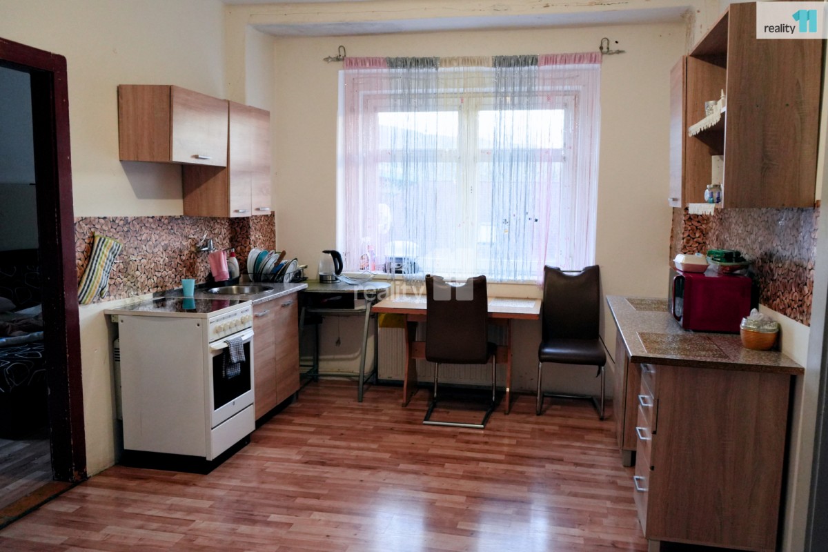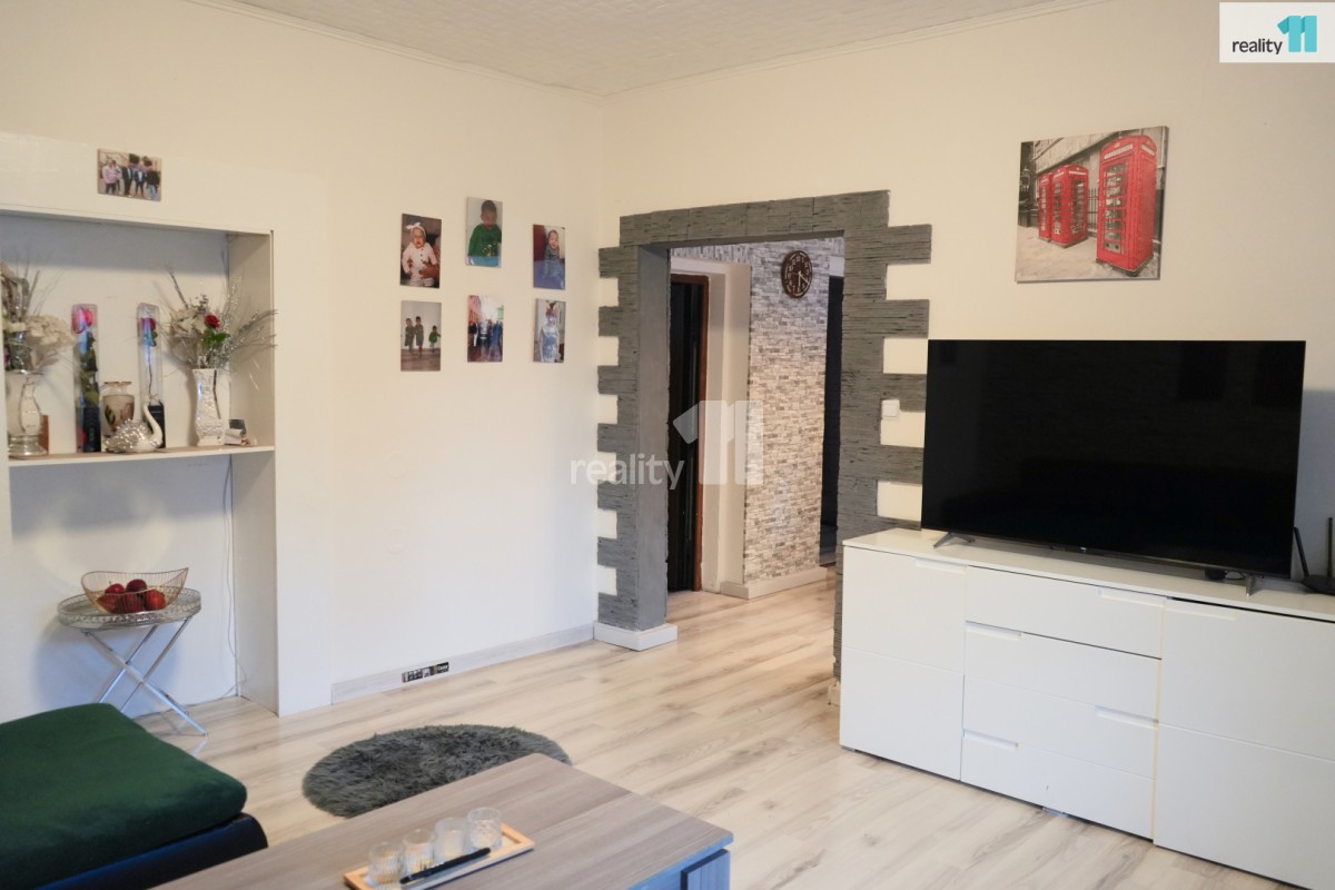 Dům má tři podlaží, v 1. NP (první nadzemní patro) se nachází bytová jednotka po vkusné rekonstrukci o velikosti ..."3 pokoje + 1 kuchyň">3+1, nachází se zde moderní kuchyně, ložnice, obývací pokoj po rekonstrukci, dětský pokoj a koupelna se sprchovým koutem taktéž po rekonstrukci+sociální zařízení WC a vstup do sklepních prostor. Jsou zde nové plovoucí podlahy.
