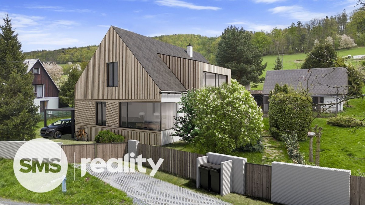 V přízemí domu je veranda, samostatná kuchyň, dva pokoje, koupelna, ... toaleta a hala se schodištěm do patra, kde jsou 3 pokoje, šatna, toaleta a opět hala se schodištěm do podkroví, kde jsou další dva pokoje. Dům je podsklepený, zezadu je přistavěná garáž a sklad, dále se na pozemku nachází hospodářská budova se zastřešením a krytým venkovním posezením s grilem. K domu náleží velká zahrada, kde si děti mohou hrát a strávit čas venku a také garáž. V obci se nachází mateřská škola, fotbalové hřiště, obchod, restaurace. Vzdálenost od Bruntálu je pouhých 7km a je pohodlně zajištěna jak autobusovou, tak vlakovou dopravou v docházkové vzdálenosti do 5 minut od domu.