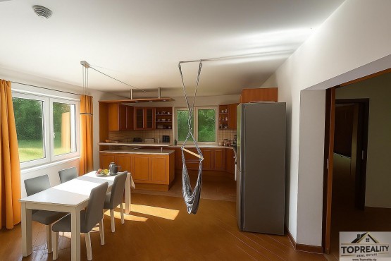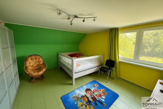 - 5 pořádných pokojů+kuchyň+herna v podkroví+2 koupelny = ideální poměr: děti si konečně... přestanou stěžovat na ranní fronty, a vy na jejich hádky. Tady má každý pokoj své dveře a každá koupelna svůj klid.