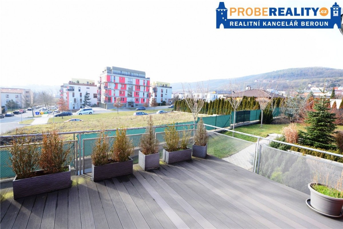 Nabízíme k prodeji exkluzivní RD (rodinný dům) o vnitřní dispozici 6+kk a celkové podlahové ploše 350 m2 / 2 x T, stojící na mírně svažitém pozemku o výměře 801 m...>2, nacházející se v klidné části města Berouna Na Paloučku. V přízemí nalezneme dvě garáže, dílnu, sklady, koupelnu a šatnu. V prvním patře se pak nachází velkoryse prostorný obývací pokoj, jídelna, kuchyň, pracovna a fitness. Z kuchyně a pracovny je volný vstup na terasy, orientované na J a Z. Velice dobře působí zakázková kuchyně od značky Infiny s veškerými vestavěnými spotřebiči, vysoké kvality. Posezení v obývacím pokoji zpříjemňuje krb. V druhém patře se pak nachází tři ložnice, každá s vlastní šatnou a 2 x koupelna. Pobyt v udržované zahradě zpříjemňuje vzrostlá vegetace, která dostatečné kryje ji zastřešený bazén. Celý dům byl postaven s velikým důrazem na kvalitu a s citem pro detail. Samozřejmostí je klimatizace, podlahové topení a centrální vysavač. Nutno vidět. Velice klidná a žádaná lokalita s dostatkem soukromí a zeleně. Veškerá občanská vybavenost v místě.