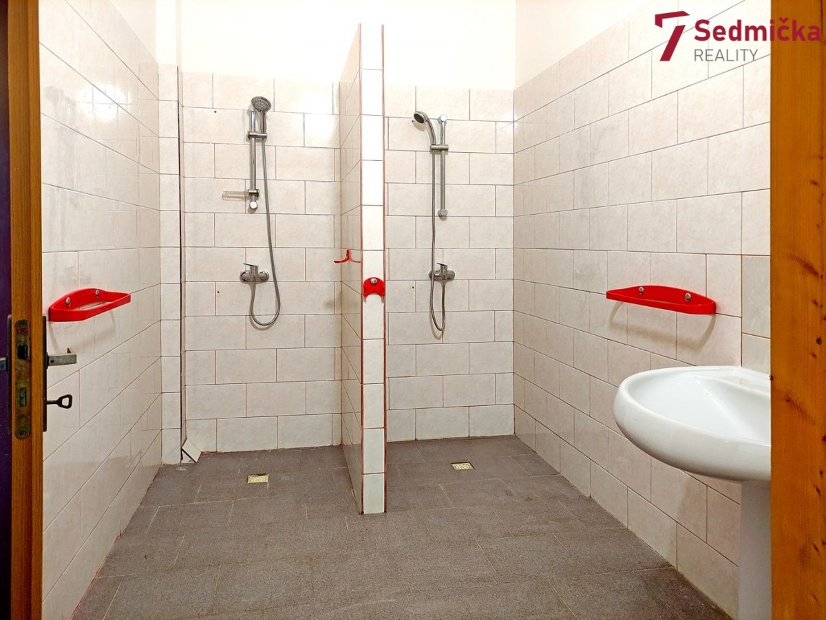V 1. NP (první nadzemní patro) jsou 2 pokoje s koupelnami, sprchovými kouty a sociální zařízení WC, 4 pokoje se společnou kouplnou s vanou a sociální zařízení WC.