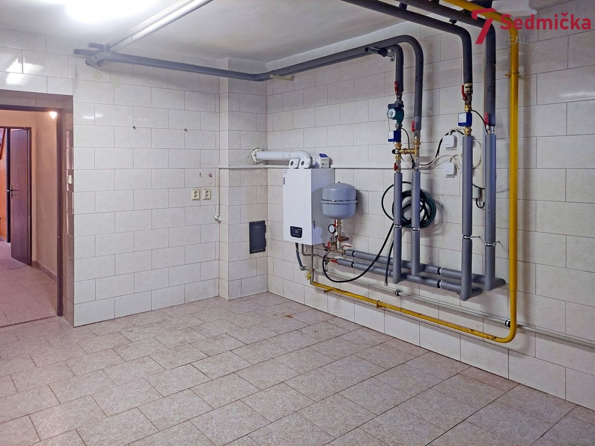 Topení - plynovým kotlem, vodu ohřívají tři elektrické bojlery, dům má vlastní studnu i přípojku veřejného vodovodu, odpady - kanalizace.