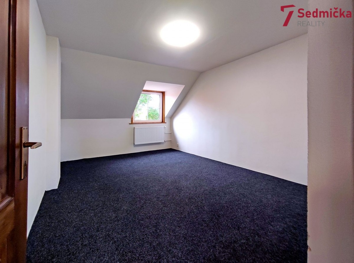 V přízemí je garáž na tři automobily a za domem zahrada s výměrou 558 m2.