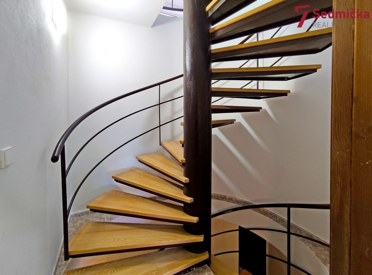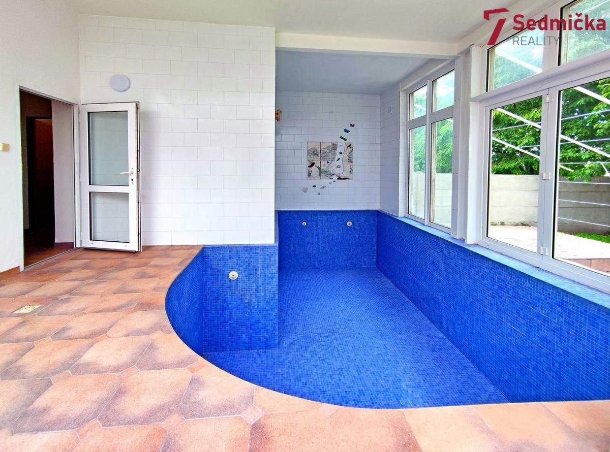 V suterénu je velká společenská místnost, která může sloužit jako kulečníková herna, kotelna s plynovým kotlem, úpravna vody pro bazén, sklad, chladící box a malá kuchyň.
