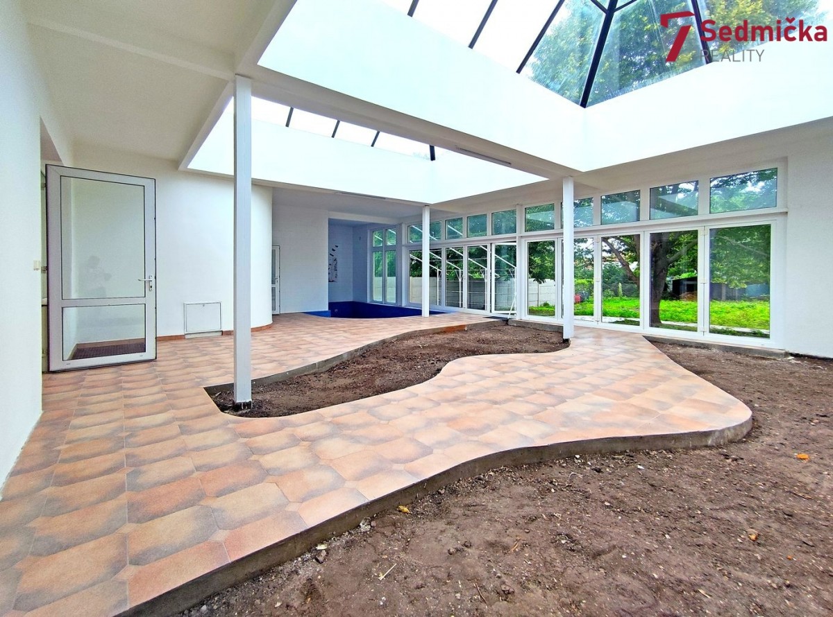 Z jednoho pokoje je vstup na střechu zimní zahrady, sloužící jako terasa.