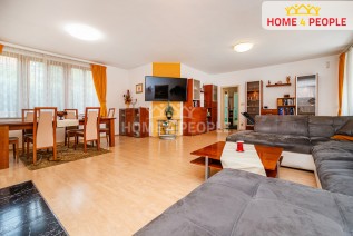 Garáž pojme 2 vozy, pro další 4 je místo na zámkové dlažbě za vjezdem, vše na dálkové ovládání.