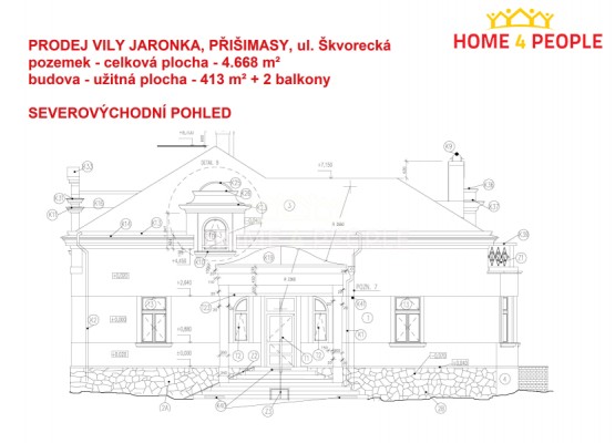 Zprostředkujeme Vám výhradní prodej unikátní prostorné vily (vila Jaronka) o dispozici 8+2 (413 m²) s vlastním rovinatým oploceným pozemkem (s přístupem z obecní komunikace) o velikosti 4668 m², v ulici Škvorecká - v Přiši...masech nedaleko Prahy. Třípodlažní částečně revitalizovaná budova z roku cca 1830 s nově přistavěnou částí o celkové užitné ploše 413 m² (obytné ploše domu 376 m² + zázemí ve sklepech o velikosti 37 m² + půda) disponuje osmi pokoji, dvěma kuchyněmi, dvěma koupelnami, dvěma balkony, dvěma sklepy, malebnou zahradou okolo domu o velikosti cca 4500 m², na které se nachází obrovská samostatní stodola s možností samostatného příjezdu ze sousední strany jako bonus. . Existuje možnost výstavby dalších domů na pozemku dle ÚP - vhodné pro developery. V 1. NP (první nadzemní patro) (přízemí - 200 m²), které není ještě plně dokončeno, se nachází 4 pokoje, kuchyň, koupelna, šatna, prostorná vstupní hala, dva vstupy na překrásnou zahradu, ve 2. NP (druhé nadzemní patro) (1. patro - 176 m²), nyní již plně obyvatelné podlaží, se nachází čtyři pokoje, koupelna s sociální zařízení WC, kuchyň, prostorná šatna, dva balkóny, ve 3. NP (třetí nadzemní patro) se nachází pochozí půda, v - 1. PP (suterén - 37 m²) se nachází dva sklepy - vinný a kotelna. Okna budovy směřují na čtyři světové strany. Na podlaze je položena plovoucí podlaha a dlažba. Topení a ohřev vody je zajištěno vlastním elektrickým kotlem, kotlem na dřevo a bojlerem. Do budovy je zaveden obecní vodovod a kanalizace, na zahradě se nachází vlastní studna a možnost parkování mnoha vozů. Průkaz energetické náročnosti budovy - zatím uvedeno v G. V lokalitě je veškerá občanská vybavenost: obecní úřad, školka, kostel, obchůdky, hospoda, dětské hřiště, fotbalové hřiště - SK Podlipan Přišimasy, lesy, louky, pole. V nejbližším okolí (Úvaly) se nachází škola, školka, pošta, nákupní středisko, čerpací stanice, posilovna, koupaliště, rybníky, potoky, jedná se zde o život plný pohody poblíž přírody vhodný pro rodiny s dětmi. MHD - BUS - 1 min, VLAK ÚVALY - 5 min. Je zde moc hezké a klidné bydlení nedaleko Prahy. Jedná se o lukrativní záležitost pro náročné klienty, kteří hledají prostorný a unikátní dům k dokončení dle vlastních představ! Zástava banky možná, velice doporučujeme osobní prohlídku dle dohody. Ev. číslo: 31207. Energetický štítek: G