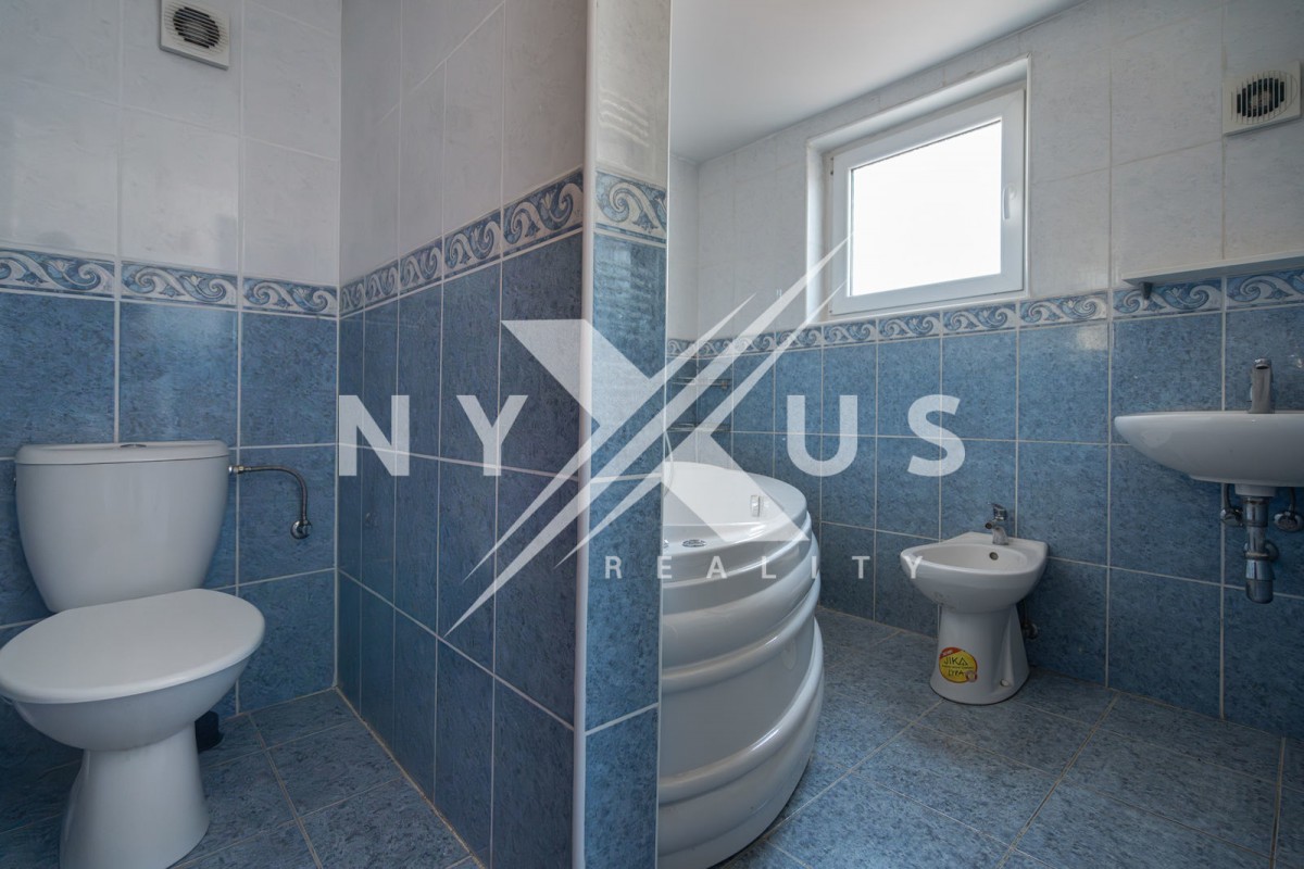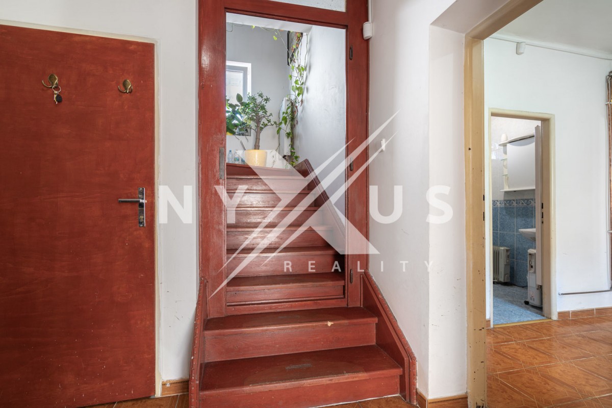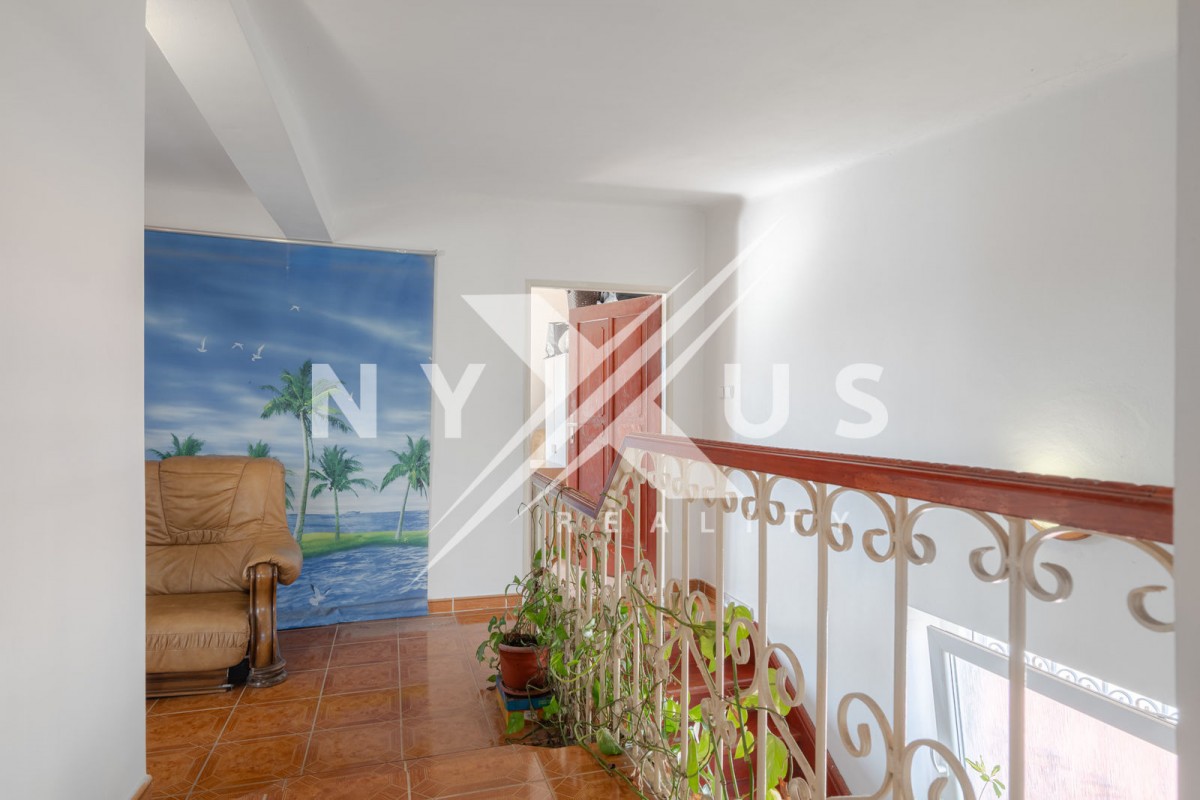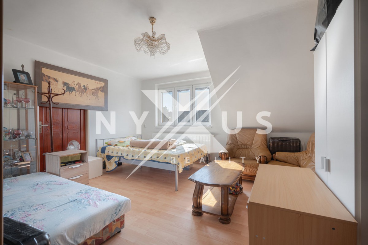 V obytném patře jsou k dispozici tři pokoje, chodba, koupelna s rohovou vanou, toaletou a bidetem, vstup na menší půdu a balkón.