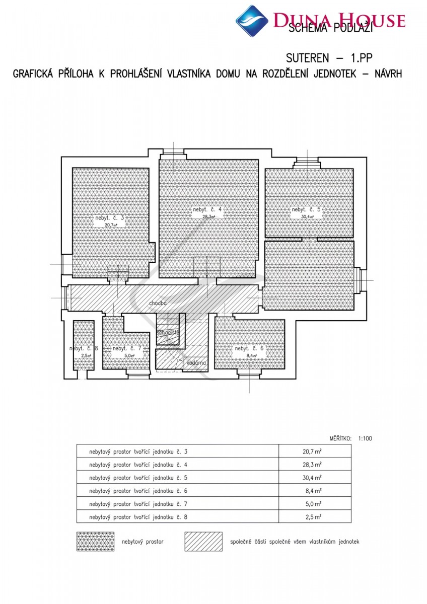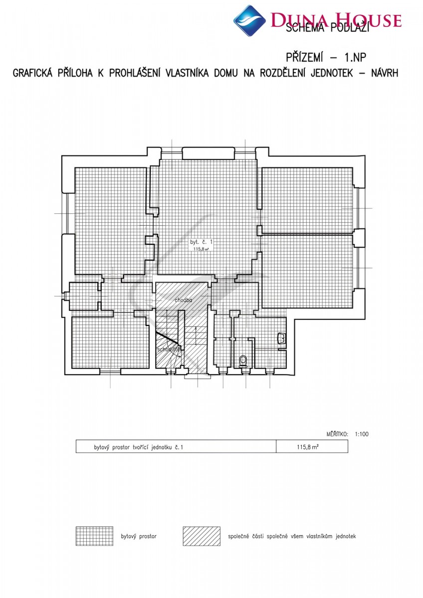 Obsahuje dva samostatné byty 4+1 o rozloze každý 130 ...m² + suterén.