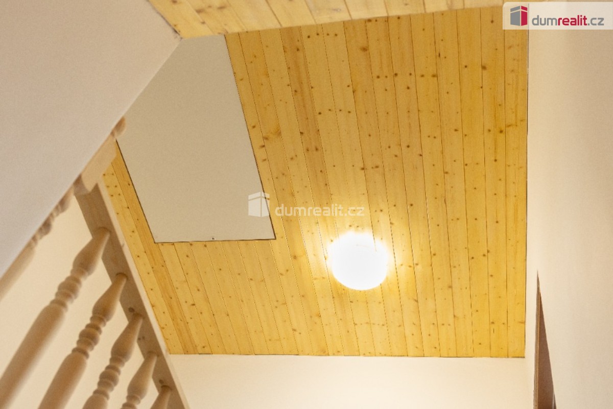 Dispozice domu 5+1 nabízí prostorné obytné místnosti ideální pro rodinné bydlení. K domu je začleněna garáž a technická místnost a prostorná půda, které vám poskytnou dostatek úložného prostoru, případně možnost rozšíření obytného prostoru. Dvoupodlažní dům se sedlovou střechou je v osobním vlastnictví a je rekonstruován. Vytápění domu je zajištěno krbovými kamny a elektrokotlem. Plyn je na hranici pozemku. Fasáda je zateplená a obložená dřevem V 1. NP (první nadzemní patro) jsou dva pokoje. Odpady jsou řešeny ČOV (osobní vlastnictví) vlastněnou z 1/4. Koupelnu a větší technickou místnost je možno přizpůsobit podle potřeby. Je zde rovněž vstup do garáže s možností jejího využití jako dílna, případně po úpravě jako další velký pokoj. Vstup na zahradu je přes zastřešenou terasu a vjezd na ni je z opačné strany zahrady. Ve 2. NP (druhé nadzemní patro) jsou 3 pokoje, kuchyň a koupelna. Z chodby je vstup na prostornou pochůzí půdu po sklopných schodech. Na terase si můžete vychutnat moc hezké klidné chvíle s výhledem do zahrady a dále do zeleně s rodinou nebo přáteli.