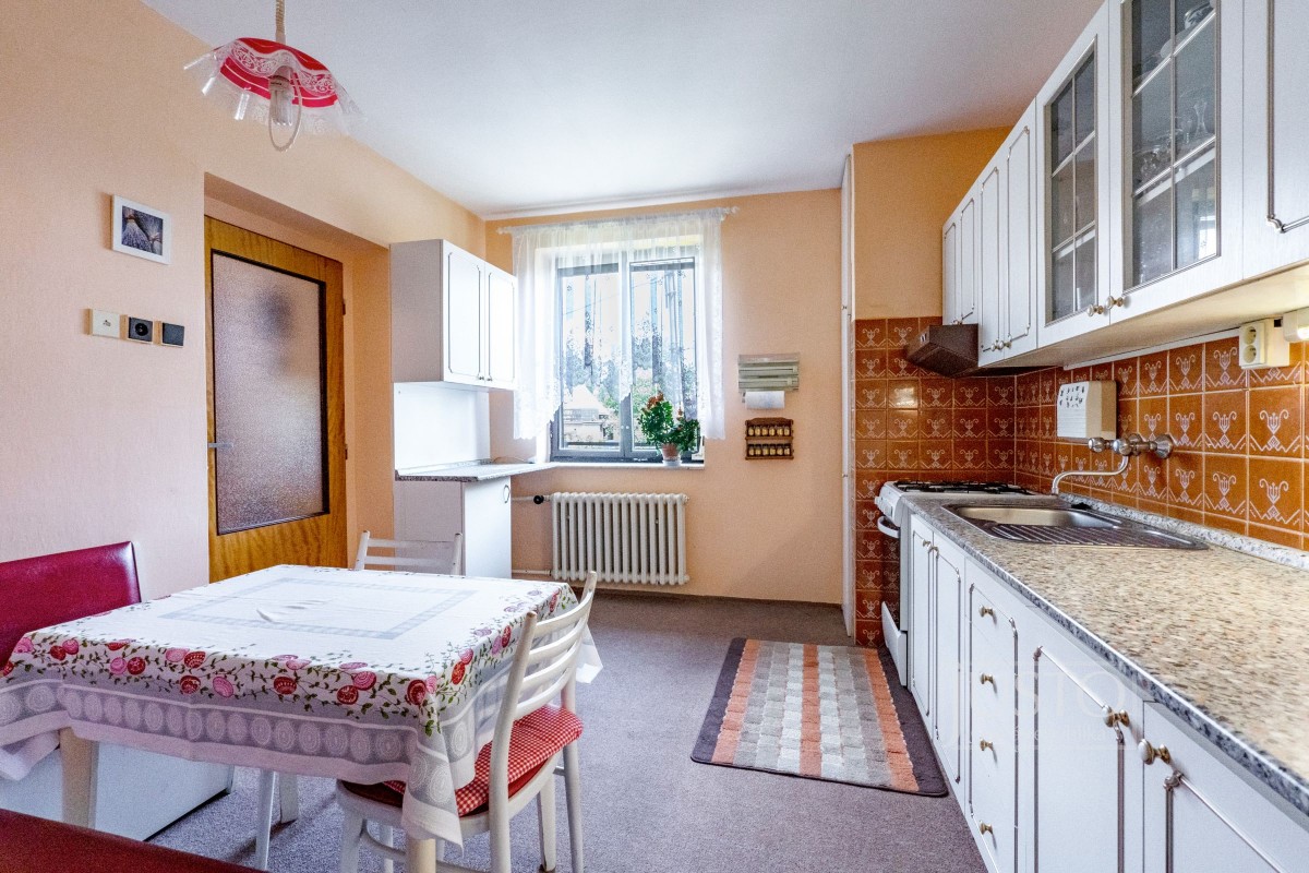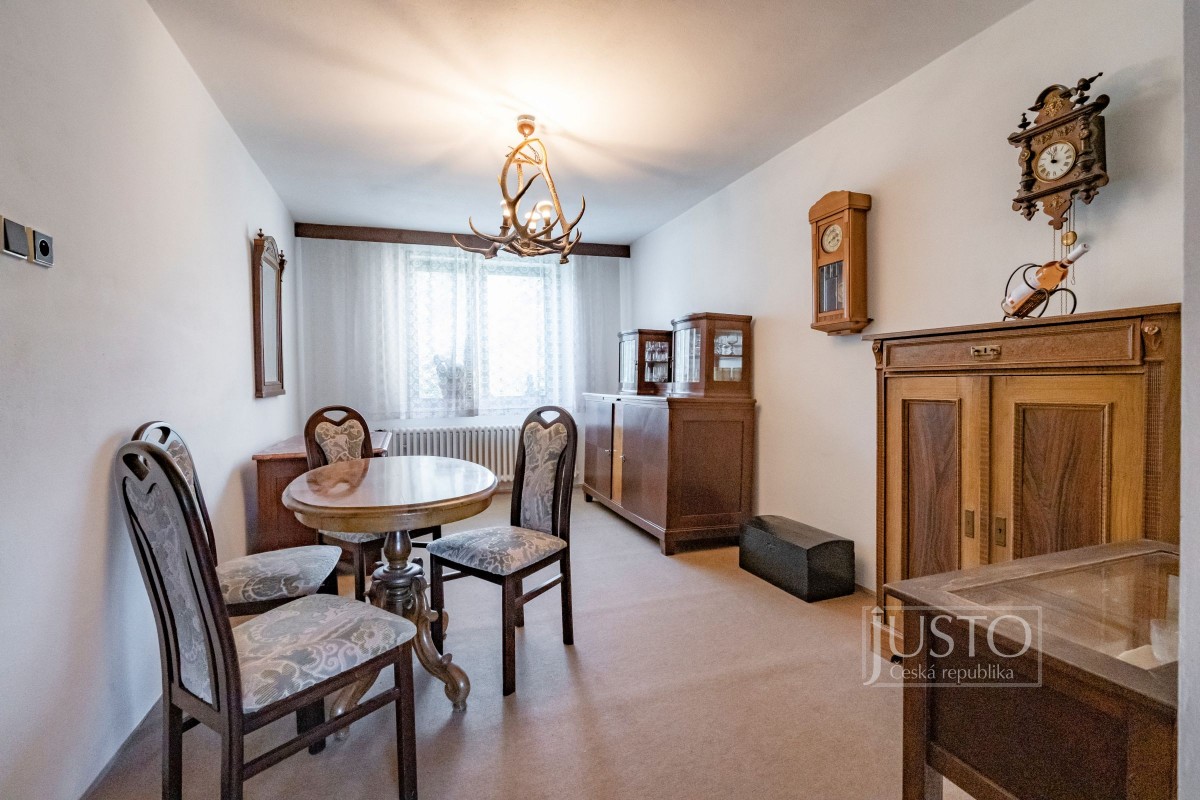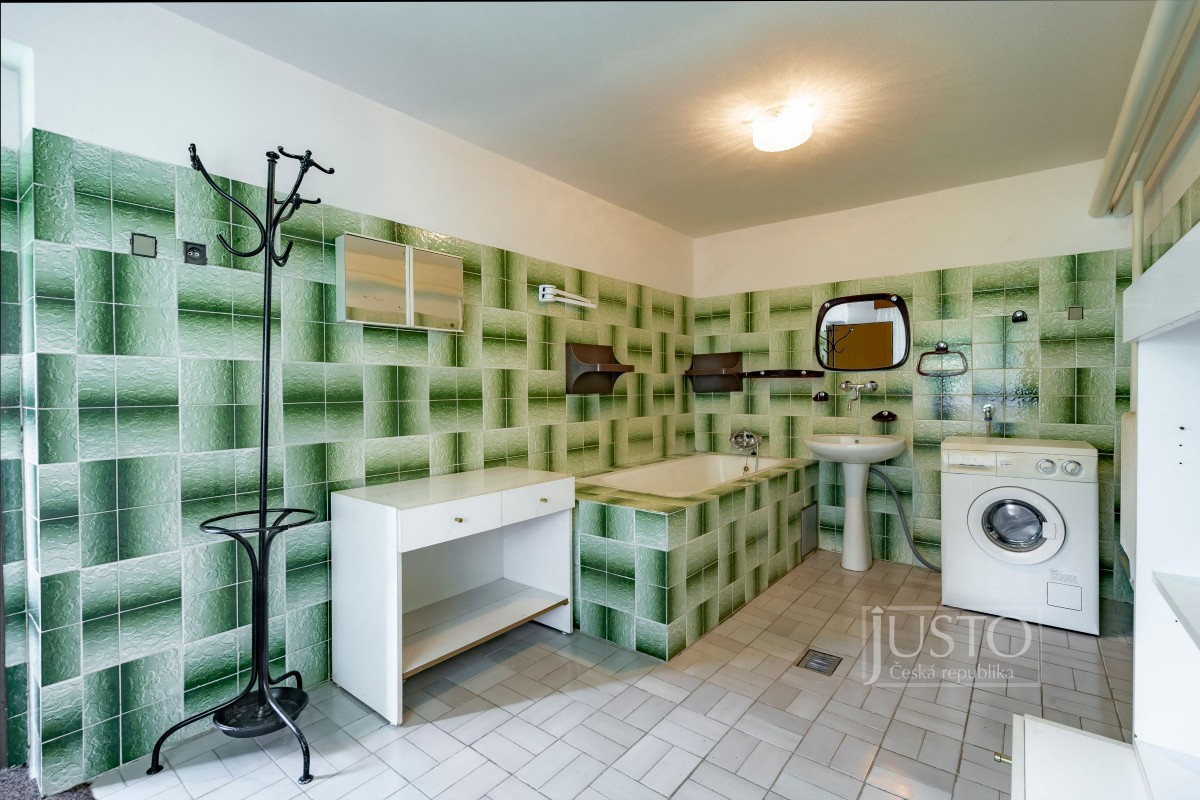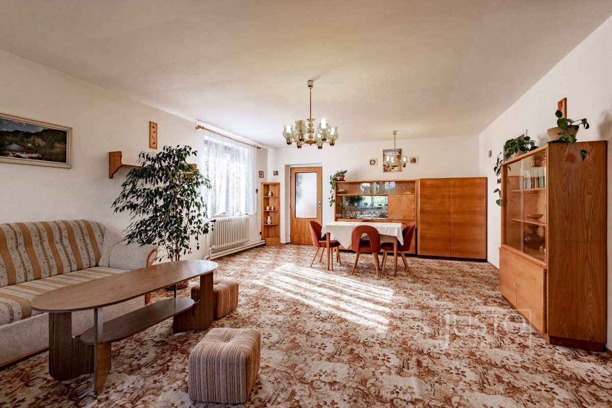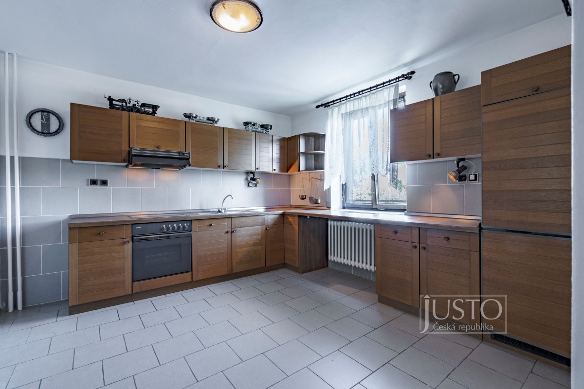 Naleznete zde 7 pokojů, 2 kuchyně, 2 koupelny, 2 oddělené toalety, garáž i samostatnou dílnu.
