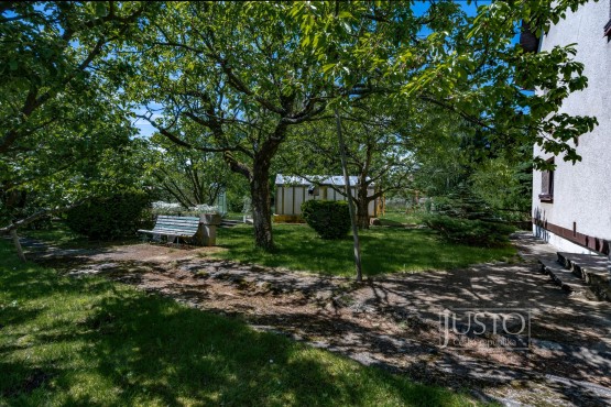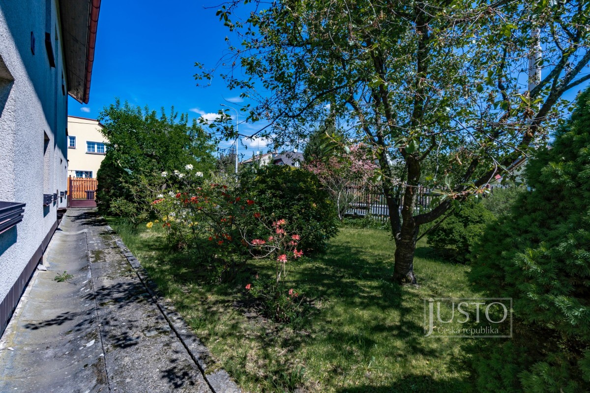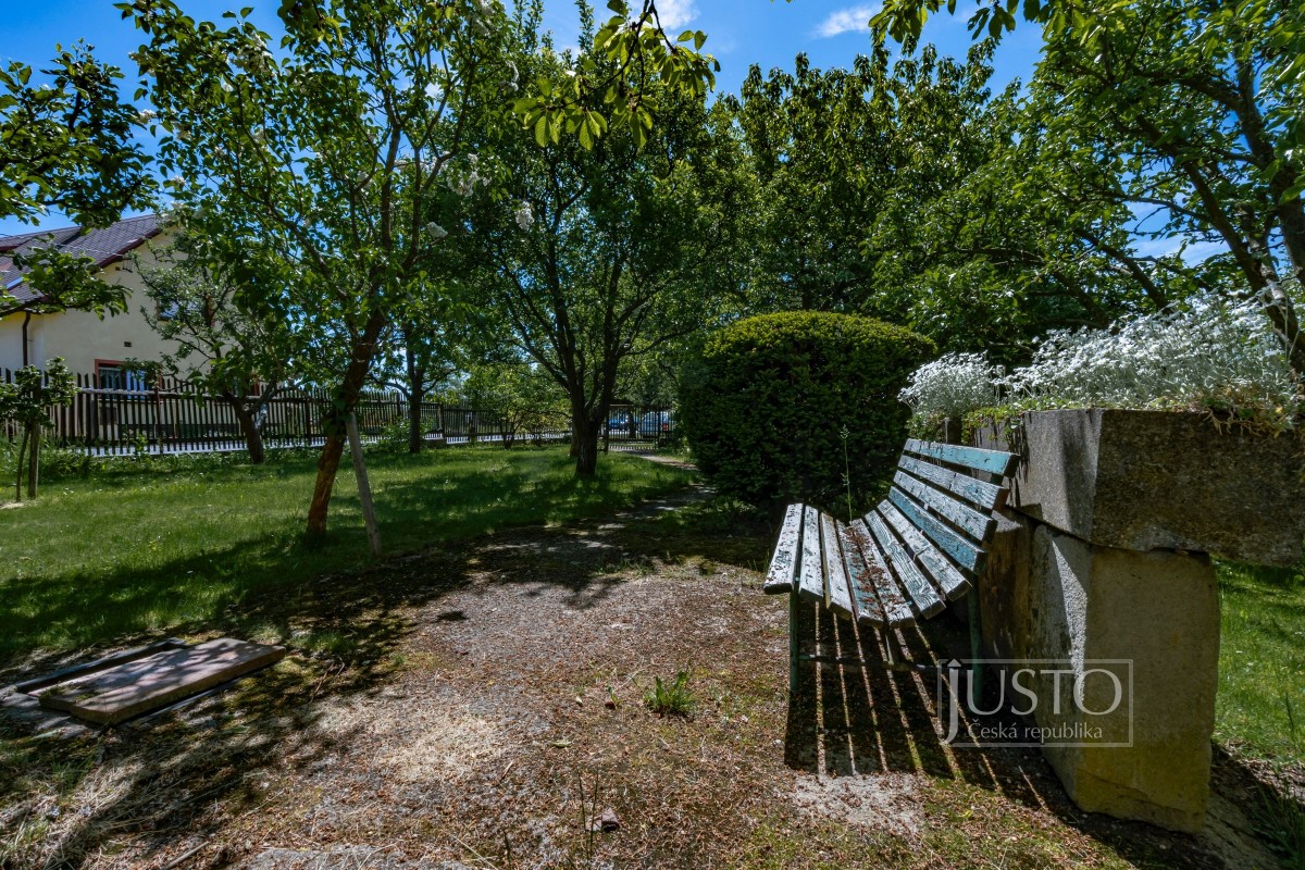 Zahrada je dostatečně velká pro trávení volného času, k tomu je zde i místo pro 4 parkovací stání.