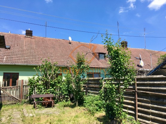 Dů...m je řadový se společným vstupem pro dvě bytové jednotky a chodbou na zadní dvorek s kůlnami za domem.
