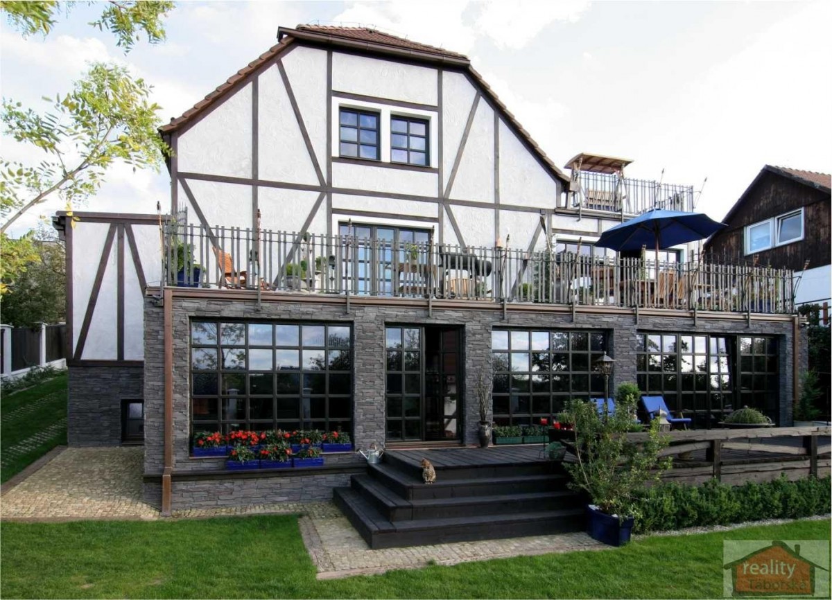 Nabízím Vám originální rodinný dům s vnitřním bazénem, jež je nadstandardně zařízená ve staroanglickém - tudorovském stylu.