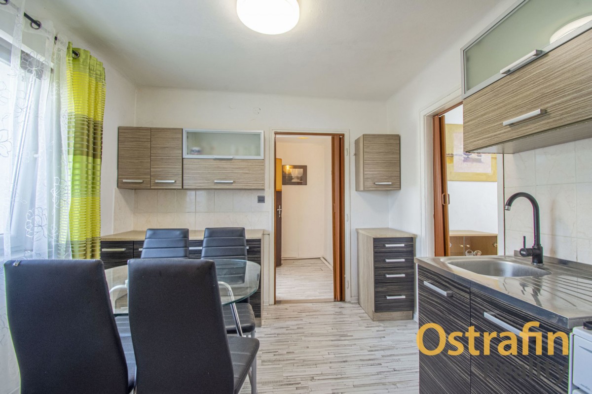 Tento přízemní podsklepený dům o užitné ploše 50 m2 má rozhodně co nabídnout. Dispoziční řešení domu je 2+1. Po vstupu do domu se octnete v prosvětleném zádveří (4 m2), které je vybavenou stolkem s židlemi. Skrz předsíň (4 m2) se dostanete do vybavené kuchyně (9 m2). Součástí kuchyně je na dvě části rozdělená linka vybavená kombinovaným sporákem a lednicí s mrazákem. V kuchyni je dále skleněný jídelní stůl s židlemi. Předností domu je menší komora (2 m2), kterou využije každá dobrá hospodyňka. Relativně prostorná koupelna o výměře 4 m2 je vybavena rohovým sprchovým koutem a umyvadlem. Toaleta s koupelnou jsou vzájemně odděleny. Obdélníkový obývací pokoj je největší místností v domě (17 m2) a je vybaven sedačkou s konferenčním stolem a krbovými kamny se zásobníkem. Další místností v domě je pokoj/ložnice o výměře 8 m2, ve které může zůstat jak postel tak i šatní skříň s komodou. Garáž přímo v domě o výměře 16 m2 ocení každý dobrý kutil. Z garáže je vstup do druhé podzemní místnosti, kterou je sklep. Tam se nachází bojler sloužící k ohřevu vody.