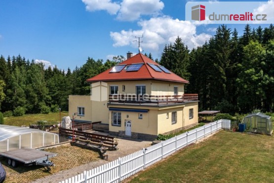Dumrealit. cz Vám nabízí koupi mimořádné a vyjímečné nemovitosti, rodinného domu vhodného k provozování penzionu či ubytování po kompletní rekonstrukci s bazénem a garáží na okraji Karlových Varů v Drahovicích na moc hezkém ...soukromém klidném místě s malebnou zahradou zároveň však v dosahu potřebné občanské vybavenosti. Dům o rozloze cca 500 m² disponuje 6 koupelnami a dal by se rozdělit na několik nezávislých jednotek, případně apartmánů, samozřejmě může sloužit jako rodinné sídlo pro početnou rodinu a patří k němu zcela oddělená dostavba dalšího bytu se samostatným vchodem (80 m²). Dům obklopuje pozemek o celkové rozloze 4054 m² s tím, že v dolní části pozemku je geometricky vytyčena parcela o rozloze 1060 m², která by se obratem dala samostatně prodat a má i svou vlastní vjezdovou bránu. U domu se nachází dostatek parkování, je zde zastřešený funkční bazén s bezchlorovou filtrací. Celkově podsklepený dům má zdravý dřevěný krov s novou střešní krytinou (kombinace pozinkovaného plechu a bobrovky), v celém domě jsou nová plastová okna s dvojskly, je zde kompletně nová elektroinstalace, vodoinstalace a odpady. Vytápění domu zajišťuje kombinace zdrojů: tepelné čerpadlo vzduch - voda, solární panely na střeše, nový kotel na uhlí se zásobníkem a elektrokotel a krbová vložka s teplovodním ohřevem umístěná v obývacím pokoji. Rozvody topení jsou v celém domě jak podlahové, tak v radiátorech. Na pozemku je studna s dostatkem vody, odpad je do tříkomorového septiku s trativodem. Dům se nachází na moc hezkém klidném místě u lesa, zároveň 300 m od hlavní radiály Staré Kysibelské odkud je to pár minut jízdy do centra. Nedaleko jsou OC Varyáda, OC Fontána, KV Aréna, lázeňská promenáda, úřady, obchody, restaurace. Karlovy Vary jsou součástí světového historického dědictví UNESCO a jsou dějištěm každoročního filmového festivalu. Cena nemovitosti zahrnuje provizi RK a veškerý právní servis. V případě zájmu Vám rádi doporučíme naše prověřené hypoteční poradce. Ev. číslo: 647631. Energetický štítek: F (30 kWh/m2/rok).