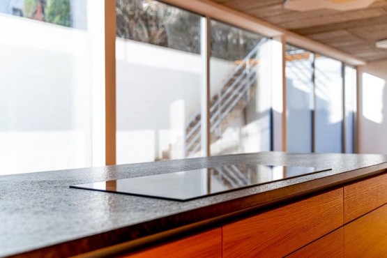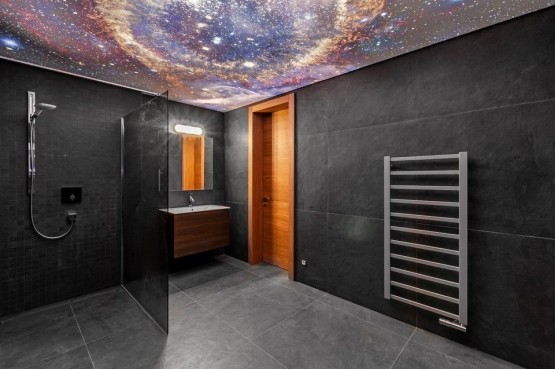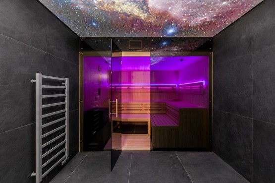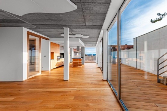 Dispozice minimalistické vily zahrnuje čtyři podlaží - 1. podlaží vstupní hala, luxusní, celoprosklená finská sauna se zázemím. Srdcem celého domu ve 2. podlaží je velkoryse řešený otevřený prostor obývacího pokoje, s designovou kuchyní a jídelnou, s prosklenými stěnami a zároveň přímým vstupem na terasu lemující celé 2. podlaží. Dále samostatná toaleta, místnost pro pračku a sušičku, komora. 3. podlaží - dva prosvětlené, jihozápadně orientované pokoje, pracovna do zahrady s výstupem na terasu zajišťující a navozující pocit intimity a ničím nerušeného klidu, prostorná koupelna s vanou a sprchovým koutem s barrisolovým stropem. 4. podlaží tvoří odpočinková (spací zóna domu), kde je umístěná hlavní ložnice se en suit koupelnou a přímým výstupem na prostornou terasu s neopakovatelnými a okouzlujícími výhledy do okolí. Další samostatná toaleta a prostorný sprchový kout.