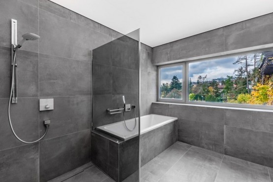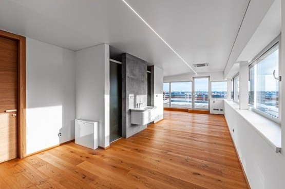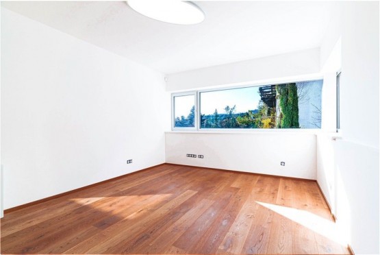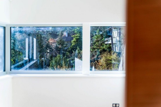 Dispozice minimalistické vily zahrnuje čtyři podlaží - 1. podlaží vstupní hala, luxusní, celoprosklená finská sauna se zázemím. Srdcem celého domu ve 2. podlaží je velkoryse řešený otevřený prostor obývacího pokoje, s designovou kuchyní a jídelnou, s prosklenými stěnami a zároveň přímým vstupem na terasu lemující celé 2. podlaží. Dále samostatná toaleta, místnost pro pračku a sušičku, komora. 3. podlaží - dva prosvětlené, jihozápadně orientované pokoje, pracovna do zahrady s výstupem na terasu zajišťující a navozující pocit intimity a ničím nerušeného klidu, prostorná koupelna s vanou a sprchovým koutem s barrisolovým stropem. 4. podlaží tvoří odpočinková (spací zóna domu), kde je umístěná hlavní ložnice se en suit koupelnou a přímým výstupem na prostornou terasu s neopakovatelnými a okouzlujícími výhledy do okolí. Další samostatná toaleta a prostorný sprchový kout.