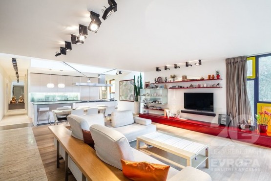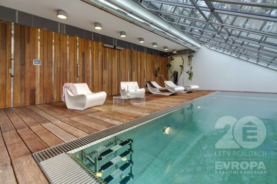 Impozantní velkoryse řešený dům 7 kk, 577 m2 s vnitřním bazénem, saunou, výtahem, střešními terasami je situován v přírodní lokalitě parku Hostivař na kraji lesa s malebným výhledem na přehradu. Precizní pro...vedení stavby a všech detailů společně se špičkovými materiály ucítíme okamžitě při vstupu do tohoto výjimečného domu. 2. NP (druhé nadzemní patro): klimatizovaná ložnice s kouzelnou koupelnou a prostornou šatnou, dvě toalety, pracovna, velká praktická kuchyň, vstup na terasu, prosklená část s kamenný krb a výhledy do okolí dotváří luxusní komfort rozlehlého obývacího pokoje. Designově řešená chodba spojuje přístup k vnitřnímu bazénu s relaxační zónou. 3. NP (třetí nadzemní patro): střešní terasa. 1. NP (první nadzemní patro): dvě ložnice se šatnami a koupelna + samostatné 2 kk pro hosty. 1. PP: vstupní hala, šatna, úklidová a technická místnost, prádelna toaleta, dvou garáž. Množství chytrých a praktických úložných prostor, inteligentní osvětlení, dřevěné podlahy, elektrické rolety, alarm napojený na PCO. Jednoduše kvalitní bydlení.