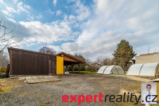 K domu náleží i velkorysý pozemek o rozloze 1 243 m, který nabízí dostatek prostoru pro vše, o čem jste kdy snili. Jeho součástí je zastřešený oválný bazén o rozměrech 3, 6×7, 3 metrů, altán vhodný ke grilování nebo večernímu posezení a také garáž o ploše 41 m. Dosud sloužila jako autodílna, díky své velikosti ale nabízí nepřeberné možnosti využití. Na zahradě nechybí řada ovocných stromků, které v létě nabízí nejen stín, ale i zdravou a chutnou svačinku. A pozemek si zamilují nejen dospělí, ale i malí raubíři. Nejen, že je tu pro ně připravena dětská houpačka, mají tu navíc dostatek prostoru k objevování a každodenním dobrodružstvím.