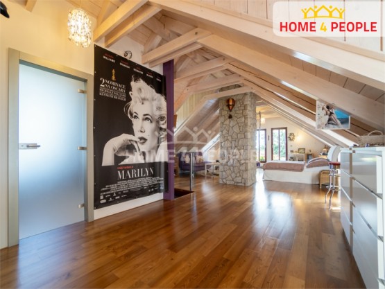 Byt č. 1 – využívá většinu plochy v přízemí. Vstup je z krytého loubí do zádveří, dále do chodby se schodištěm do sklepa a do vyššího podlaží. V přízemí je komora, pracovna (27 m²), kuchyně a obývací pokoj (41 m²). Dále se přes chodbu vchází do pokoje, komory a koupelny. Další chodbou se jde do prostorné garáže. V 1. patře se nachází dva pokoje - ložnice a další sociální zařízení. V podkroví je obytný pokoj se samostatným sociálním zařízením. Byt č. 2 – samostatný vstup s garáží a schodištěm. Ze zádveří je po schodišti přístupné podkroví, přes chodbu se vchází do obývacího pokoje s kuchyní (58 m²) a do ložnice a dalších tří pokojů o velikostech cca 20 m². Původní dům - objekt prošel mezi léty 2005 - 2017 stavebními úpravami a celkovou rekonstrukcí. Původní zadní část, bývalá hospodářská usedlost, byla rozšířená do nové přístavby, tvořící západní část domu, kde v přízemí jsou garáže a ve vyšších podlažích obytné plochy s bytem se samostatným přístupem. Dále byl k domu dostavěn blok pracovny a krytého loubí. K domu náleží pozemky o velikosti 7 884 m².