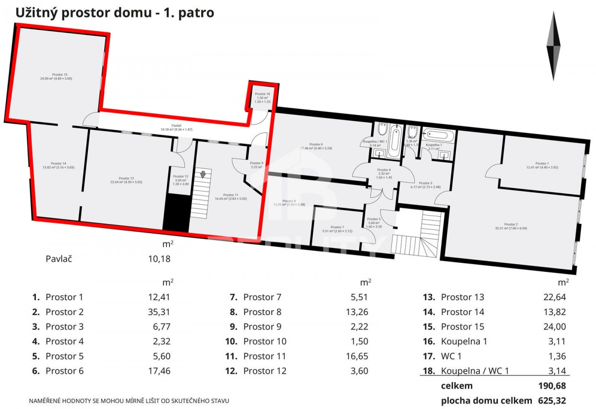S celkovou zastavěnou plochou 299m² a užitnou plochou 625 m² nabízí tato nemovitost dostatek prostoru pro komfortní bydlení i podnikání. . . s případným velice zajímavým výnosem. Nabízená polovina disponuje 2 bytovými jednotkami s celkovou obytnou plochou 159 m2 / mezonetový byt 100m2 + byt 2+1 60m2 / a stylovou restaurací s úžasným renomé, tradicí a v neposlední řadě nemalou částí historie Českých Budějovic.