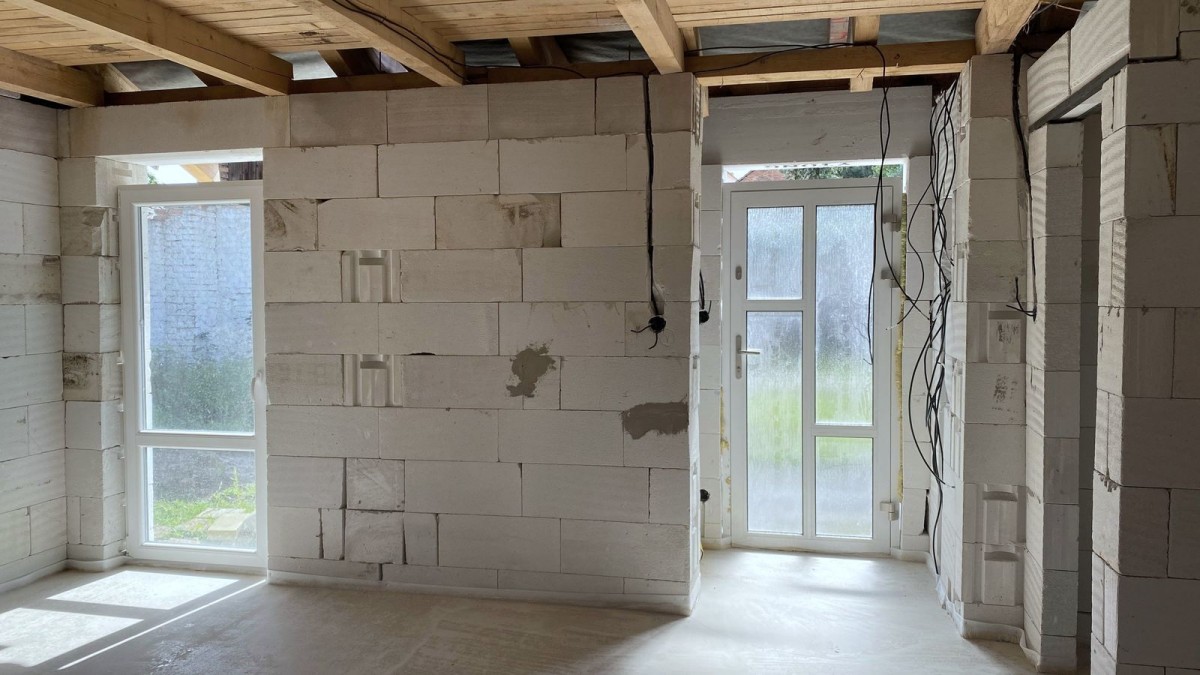 Dovolujeme si nabídnout k prodeji hrubou stavbu rodinného domu ve výstavbě včetně rozvedených inženýrských sítích o dispozici 3+kk, zastavěná plocha 70m2 na pozemku o... rozloze 205m2 v centru obce Radešín u Martiněvse nedaleko Roudnice nad Labem. Rodinný dům je jednopodlažní, nepodsklepený, obdélníkového tvaru. Použité obvodové zdivo domu Ytong, včetně oken, vstupních dveří, krovu, střešní krytiny a fasády. V domě je rozvedena voda, elektřina, kanalizace, vylitá podlaha Anhydritem a zateplena. Energetická náročnost budovy třída B.